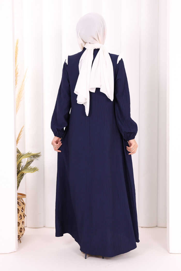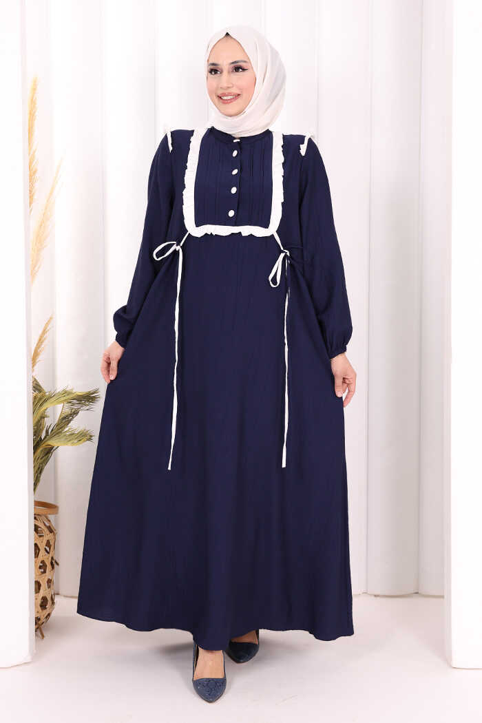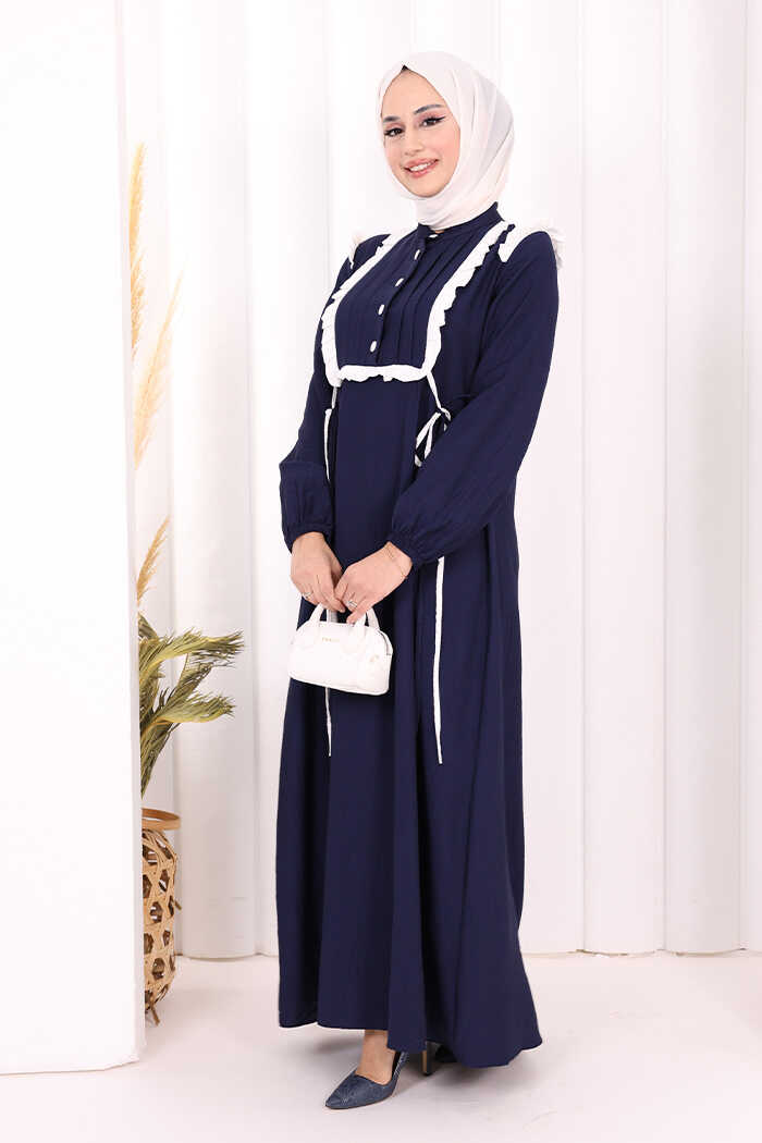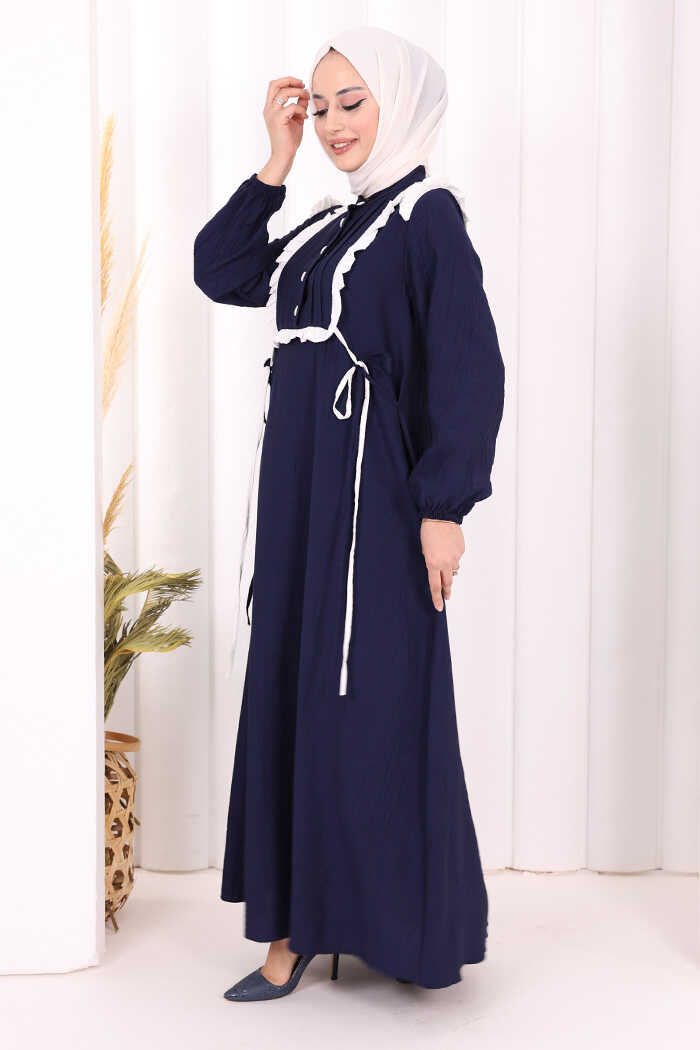 Bağlamalı ve Fırfır Detaylı Elbise 6064 Lacivert