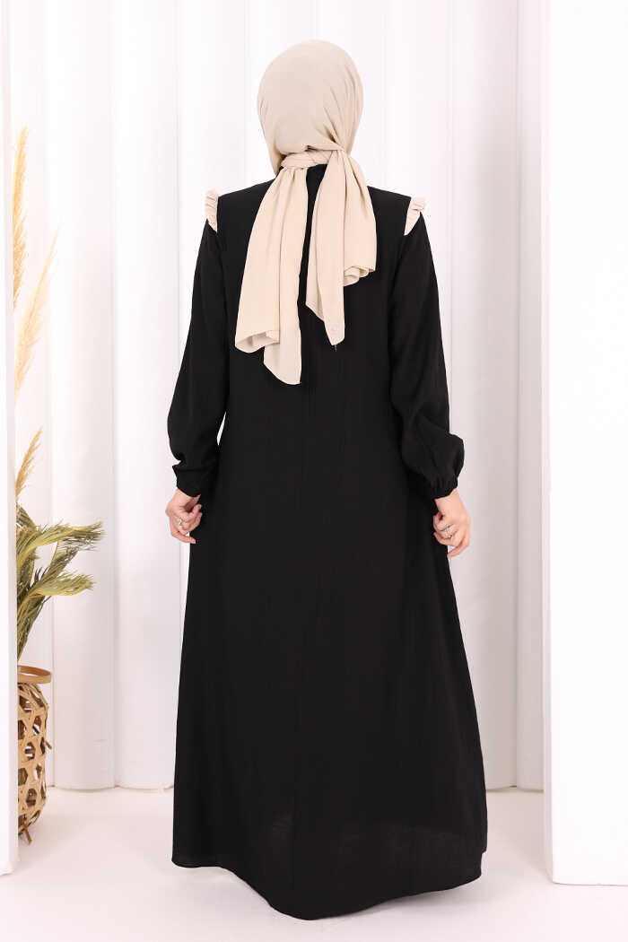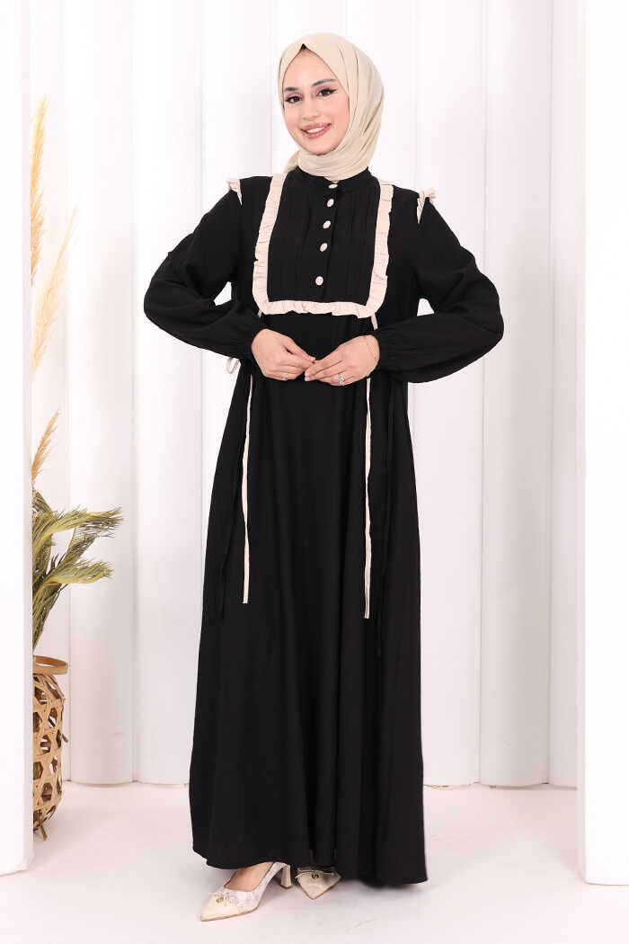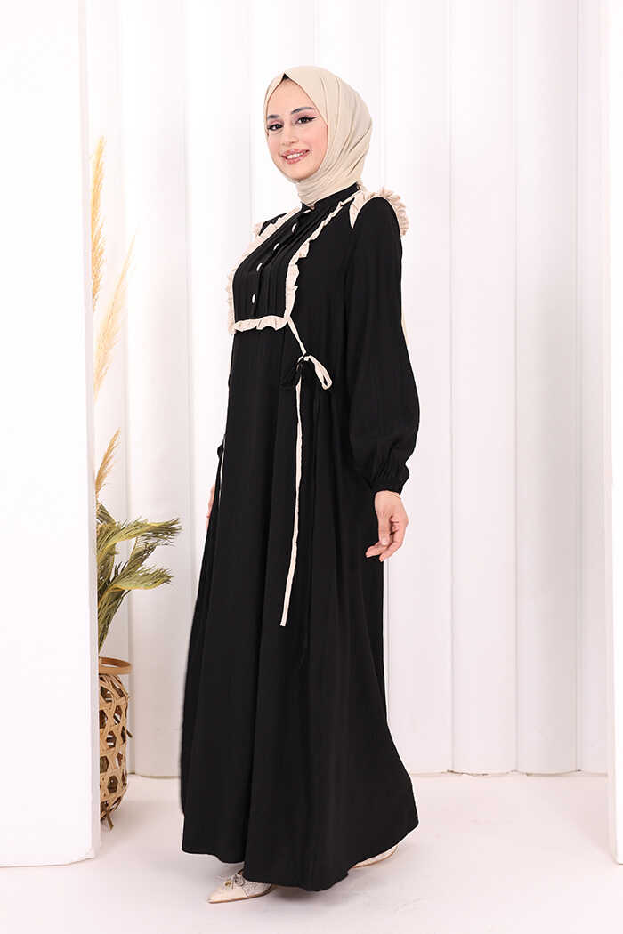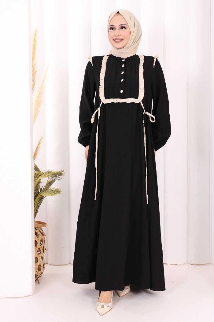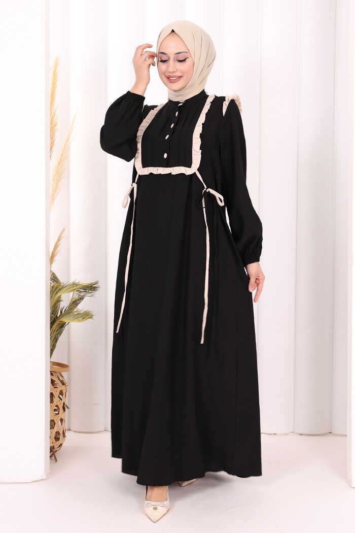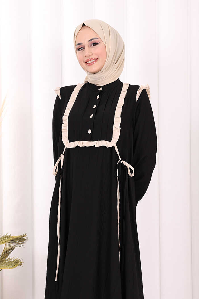 Bağlamalı ve Fırfır Detaylı Elbise 6064 Siyah