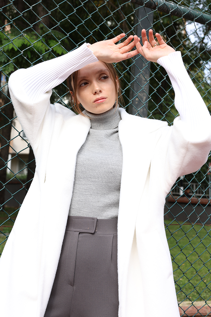 Kol manşetleri lastikli triko detaylıdır.