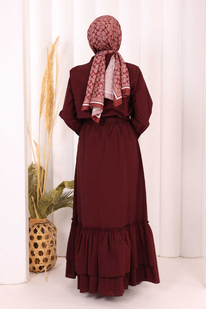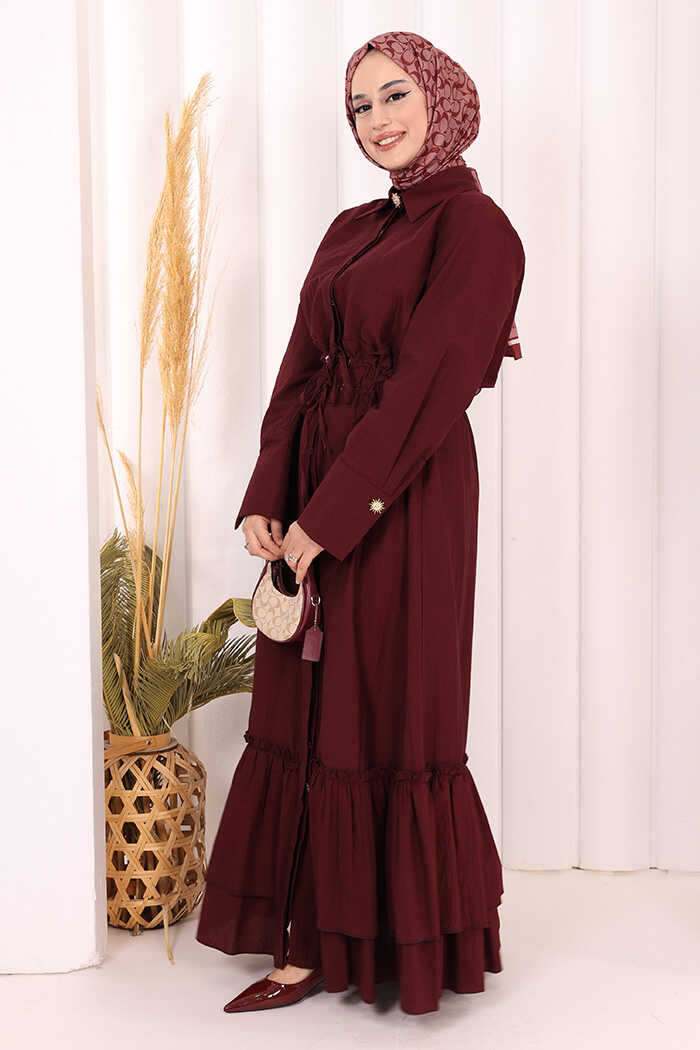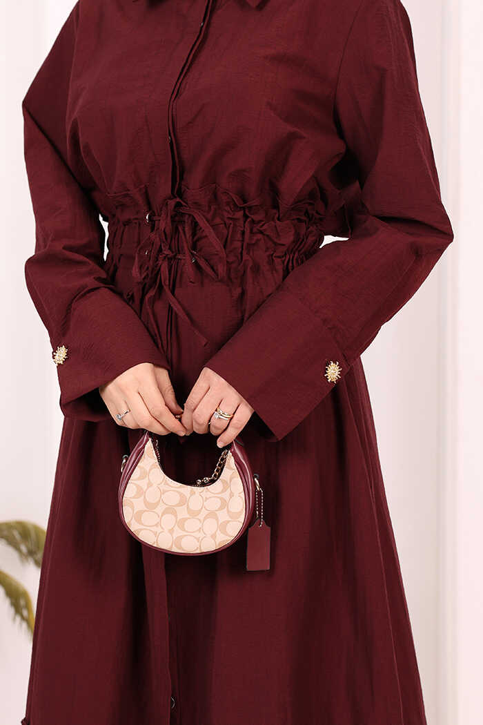 Belden Latikli Boydan Düğmeli Elbise 6062 Bordo
