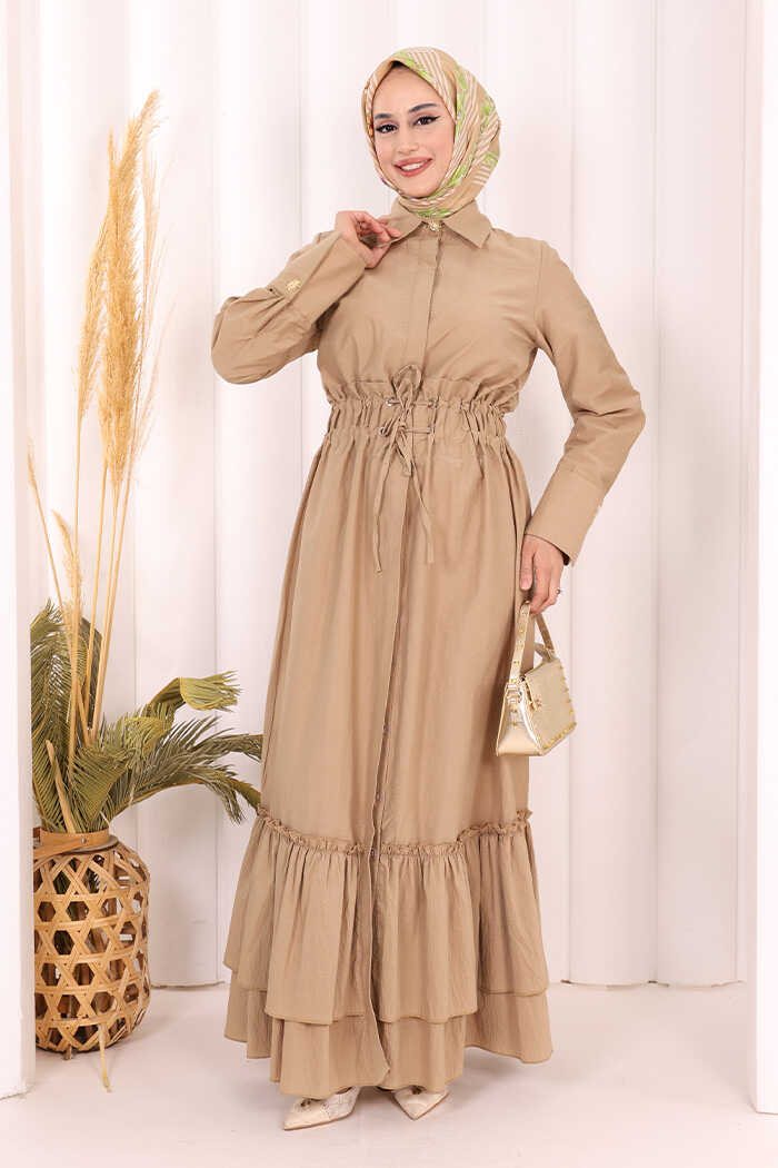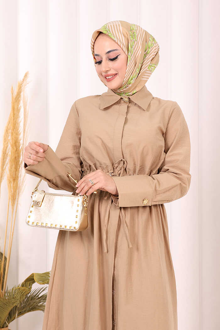 Belden Latikli Boydan Düğmeli Elbise 6062 Camel