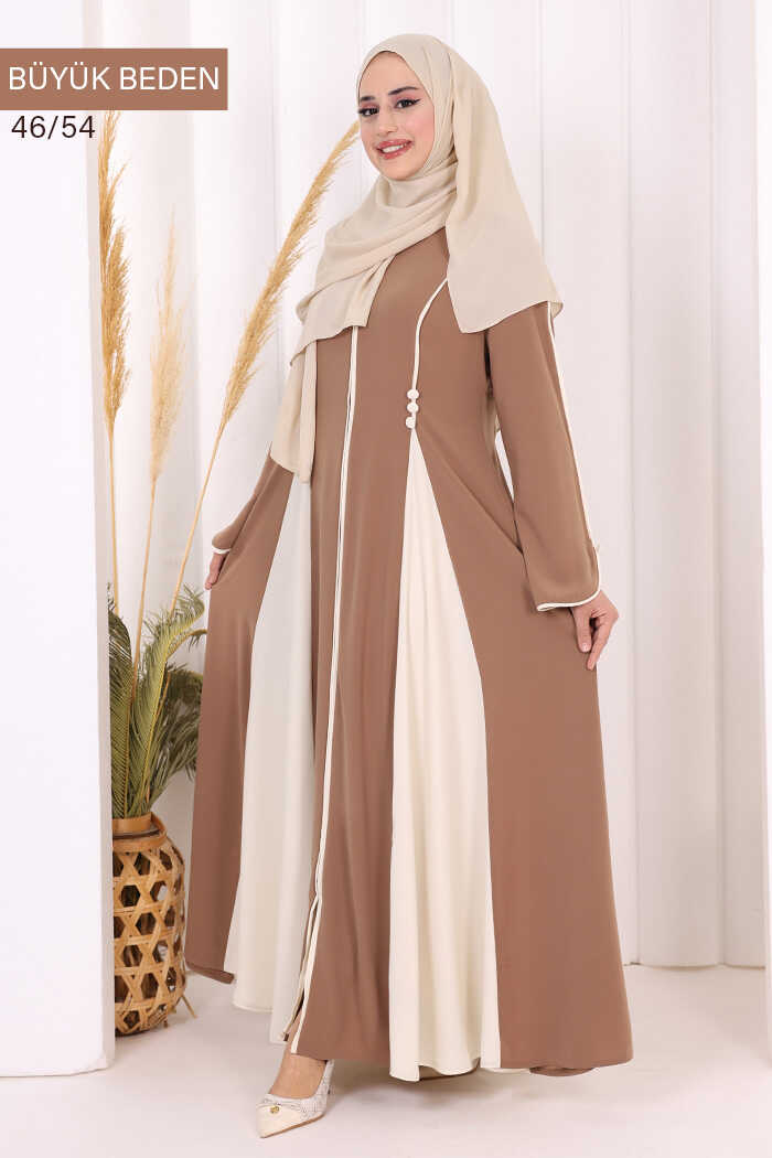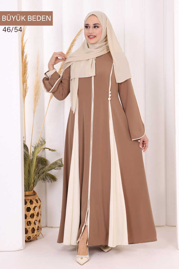 Biyeli Fermuarlı Ferace 7050-1 Taba