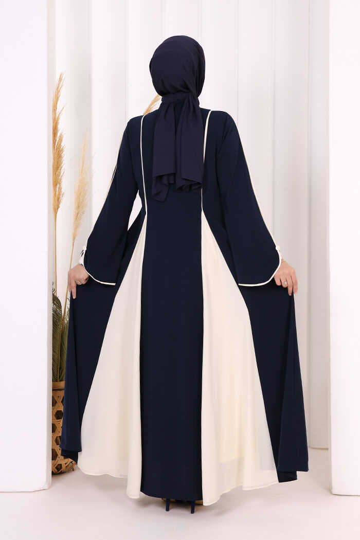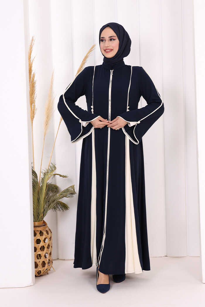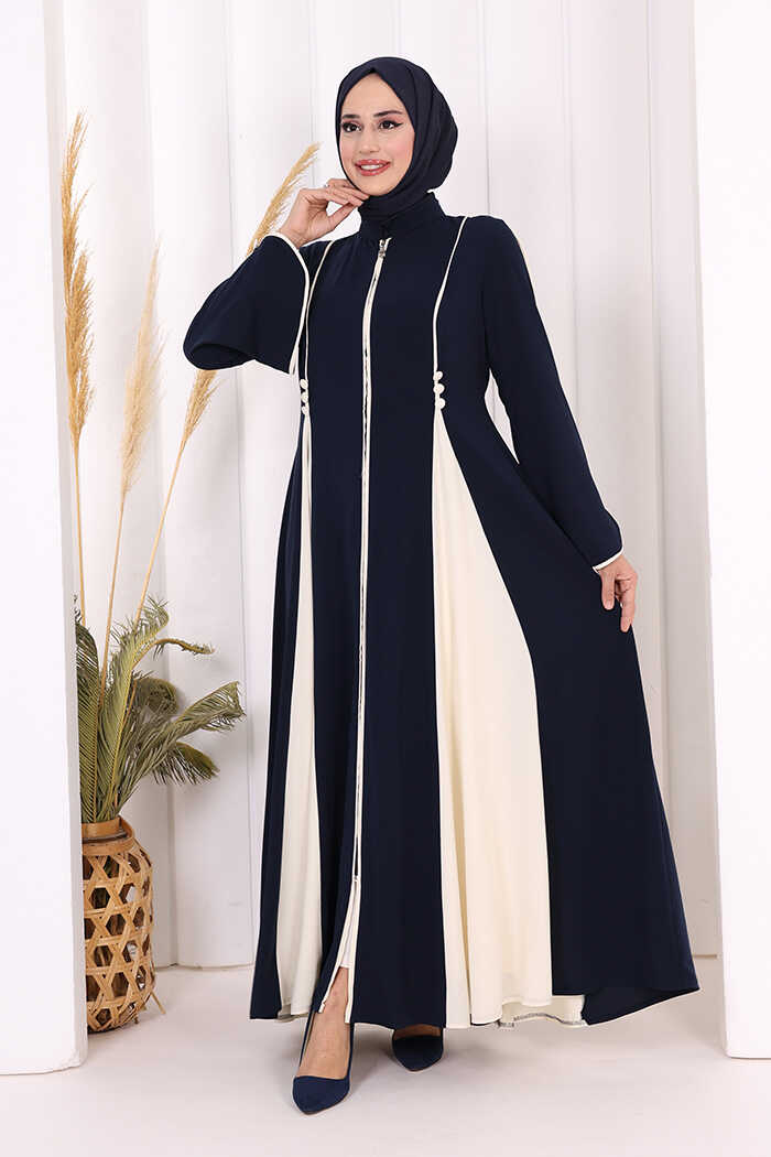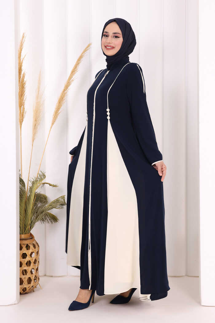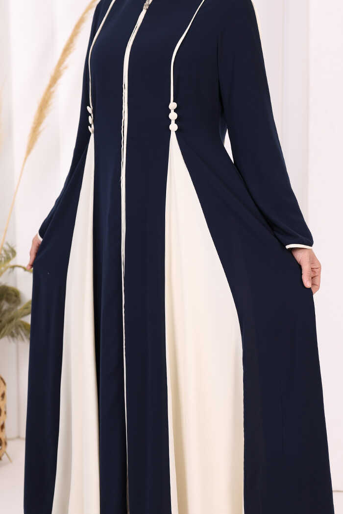 Dubai Biyeli Fermuarlı Ferace 7050 Lacivert