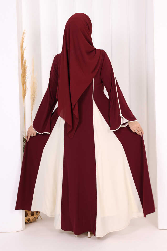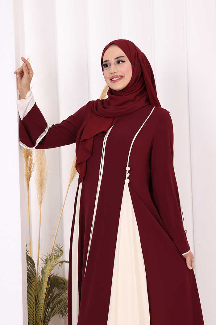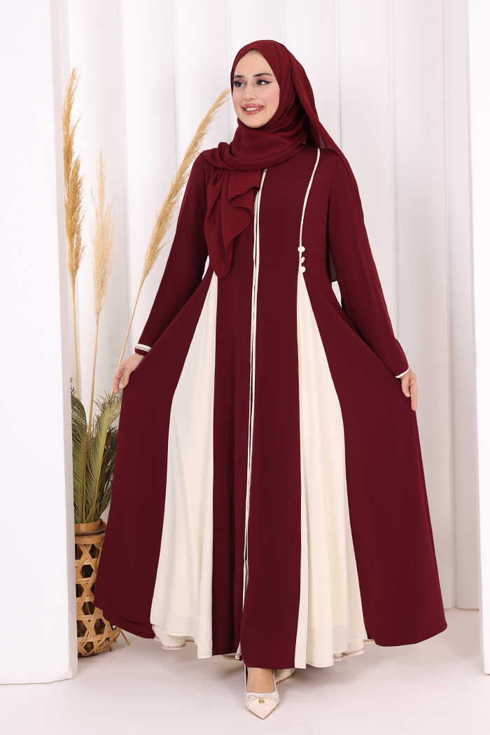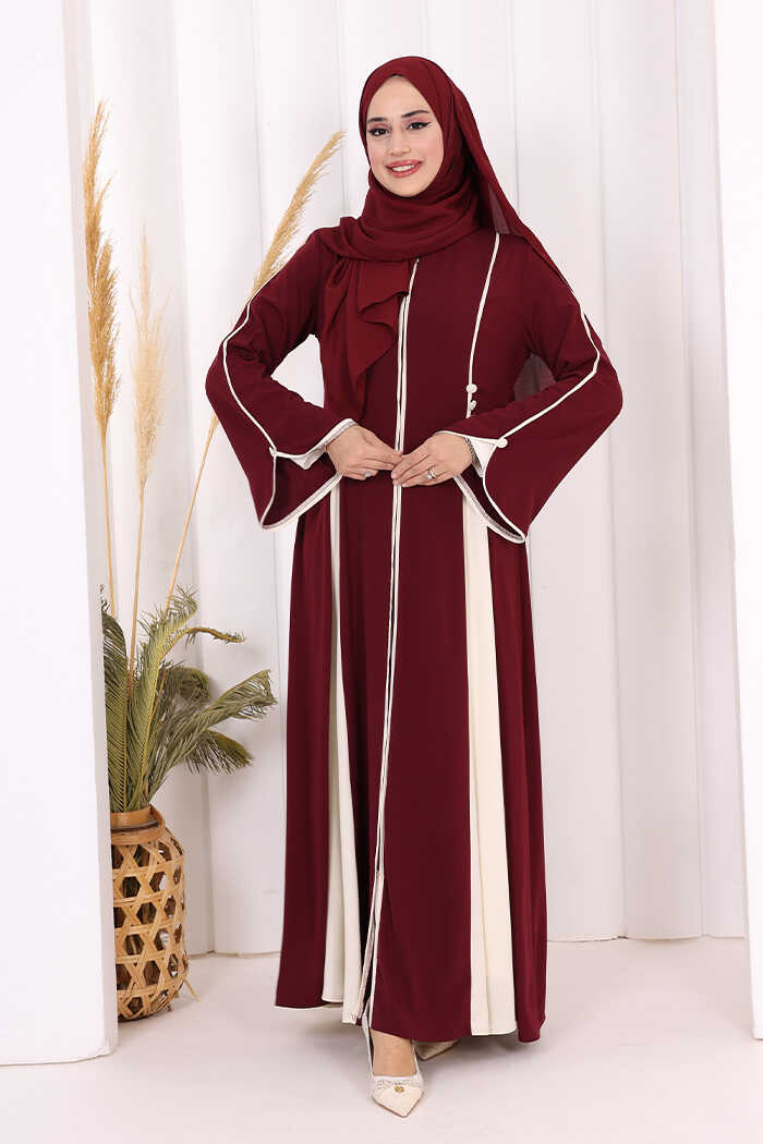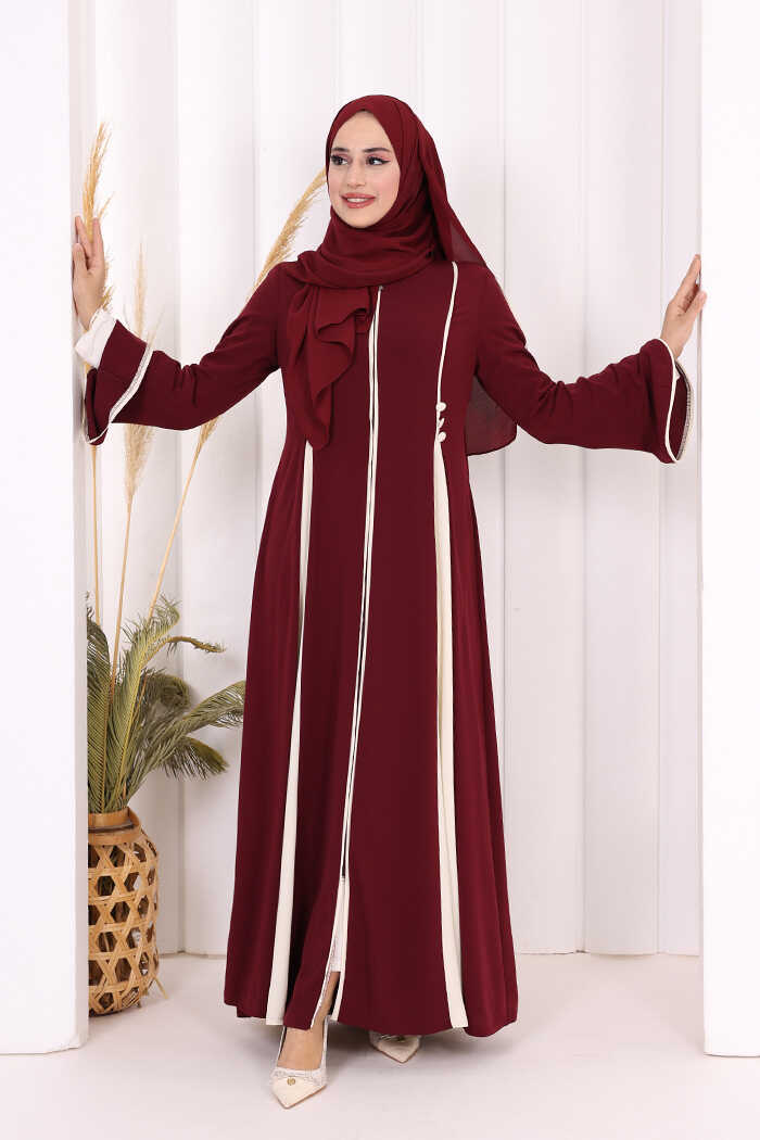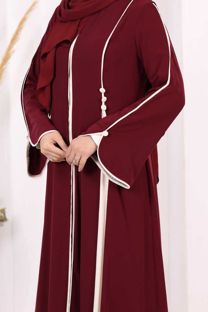 Dubai Biyeli Fermuarlı Ferace 7050 Mürdüm