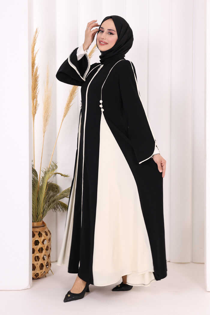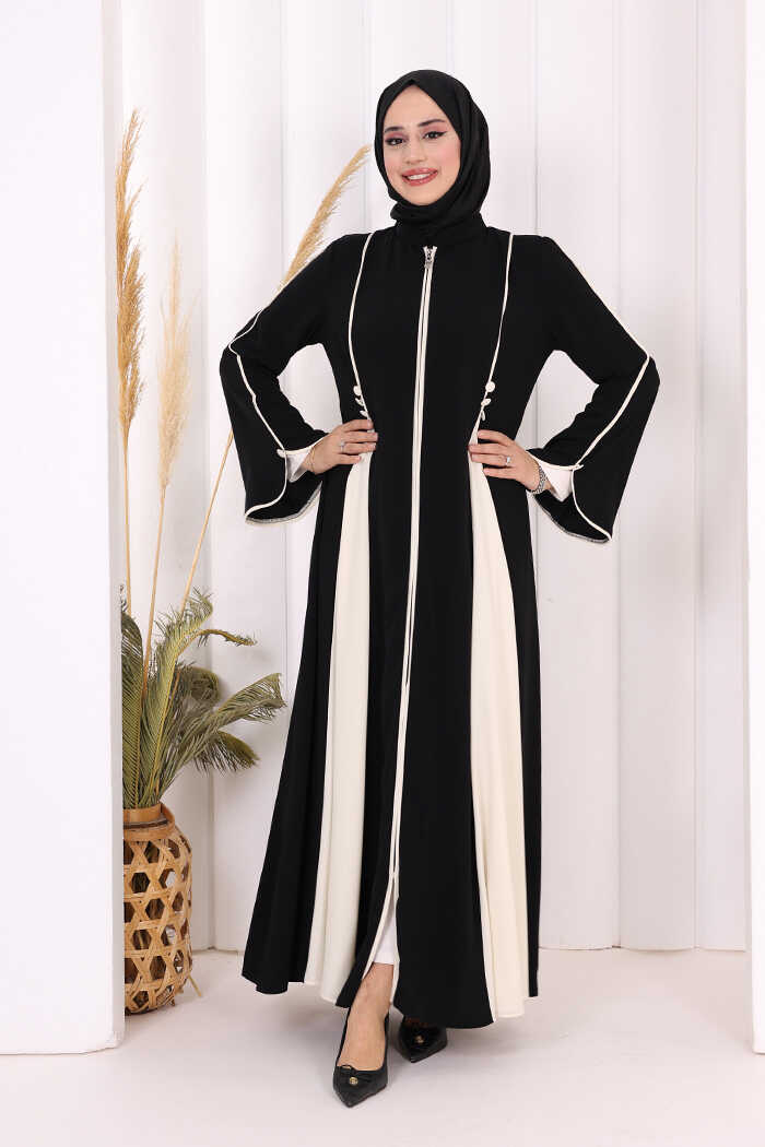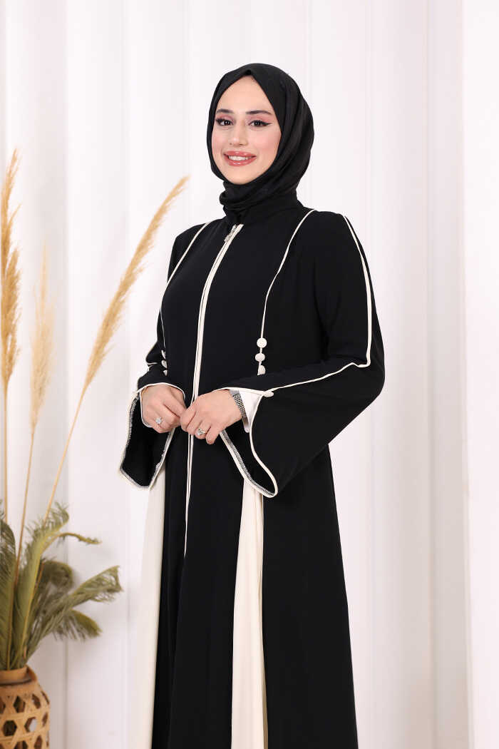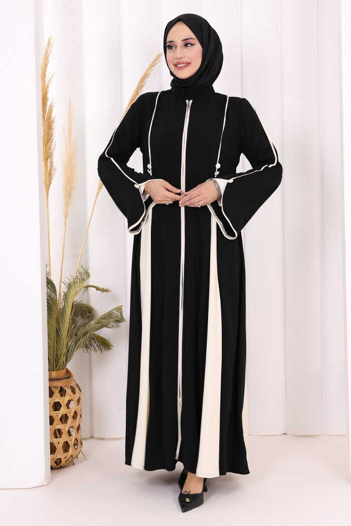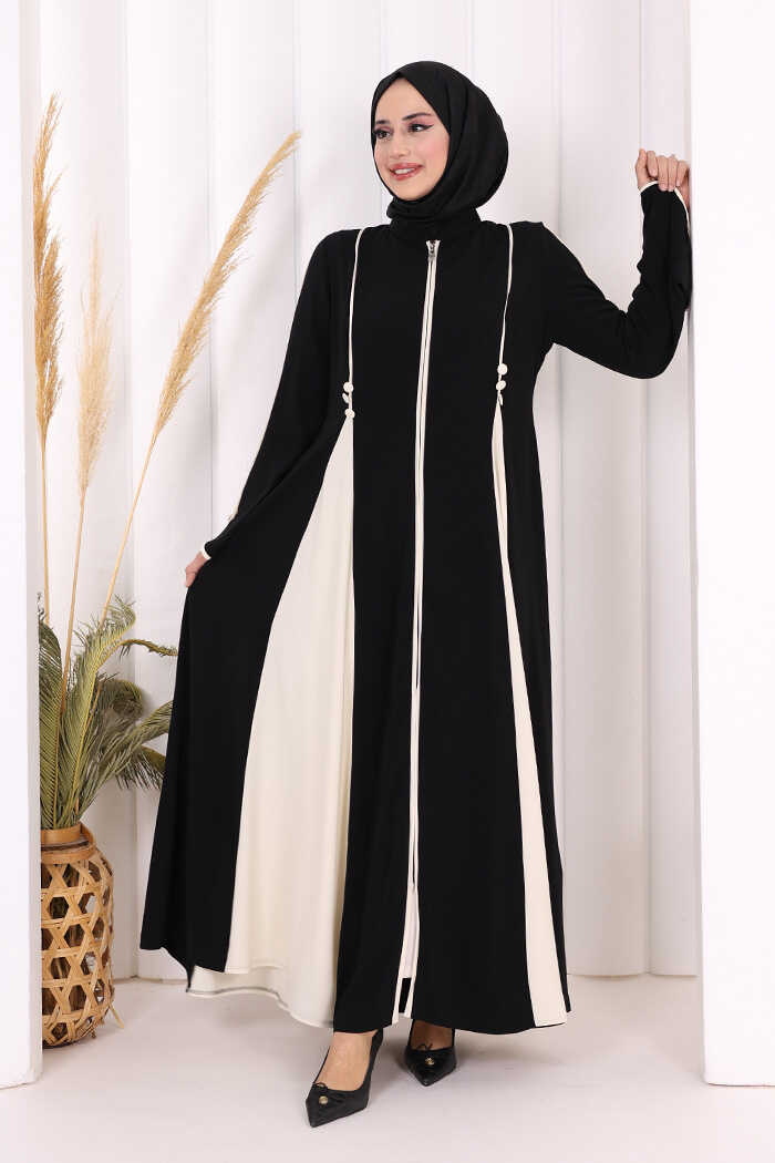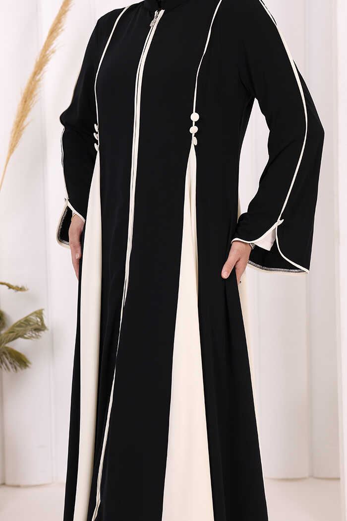 Dubai Biyeli Fermuarlı Ferace 7050 Siyah