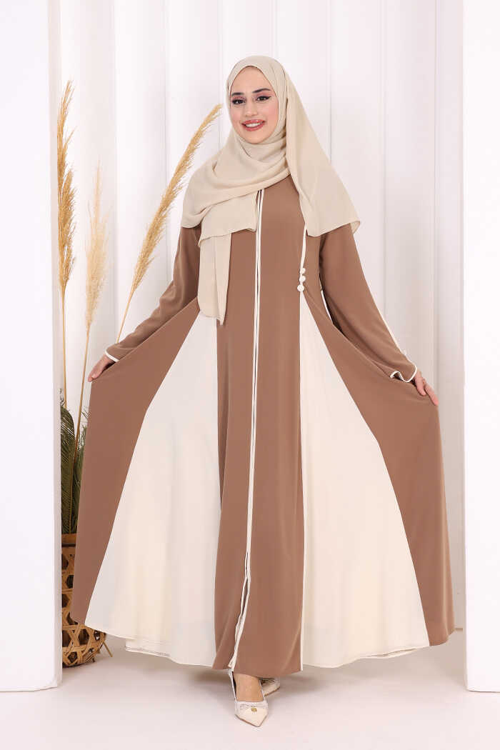 Dubai Biyeli Fermuarlı Ferace 7050 Taba