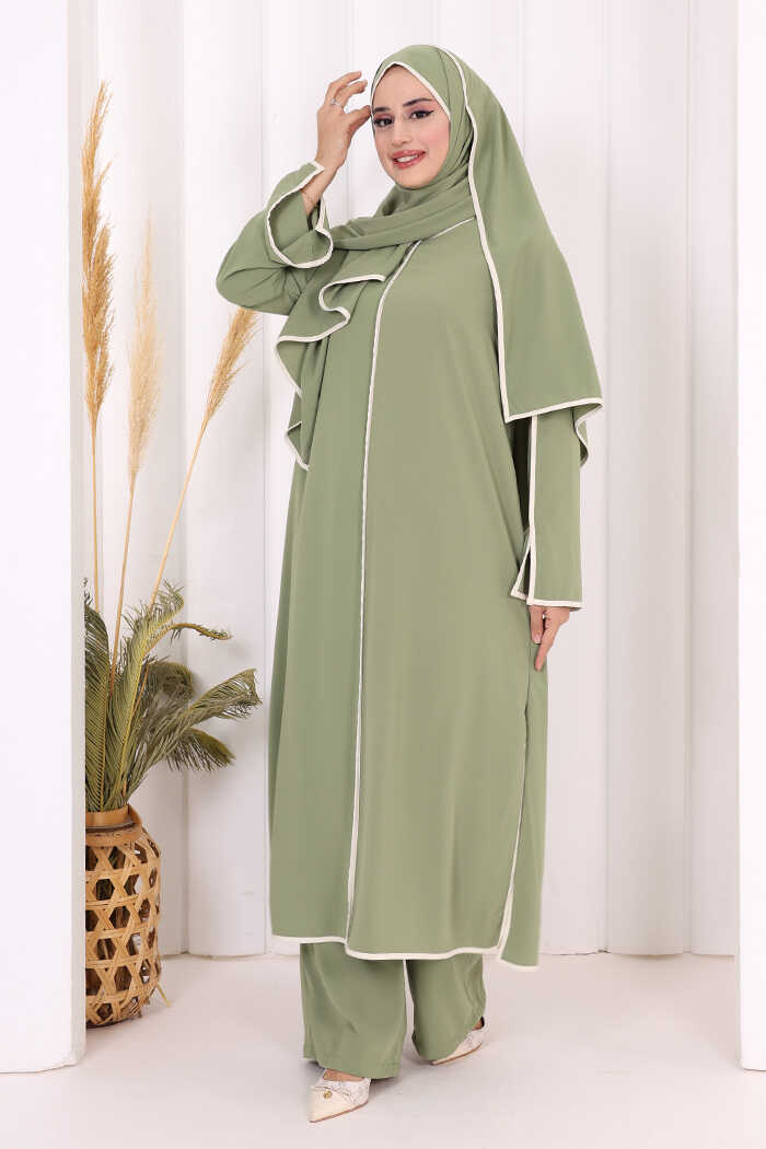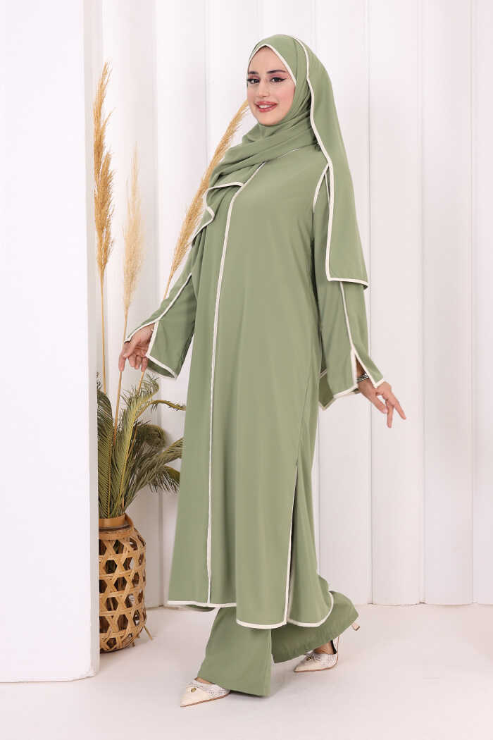 Biyeli Pantolonlu Tunik Takım 8001 Yeşil