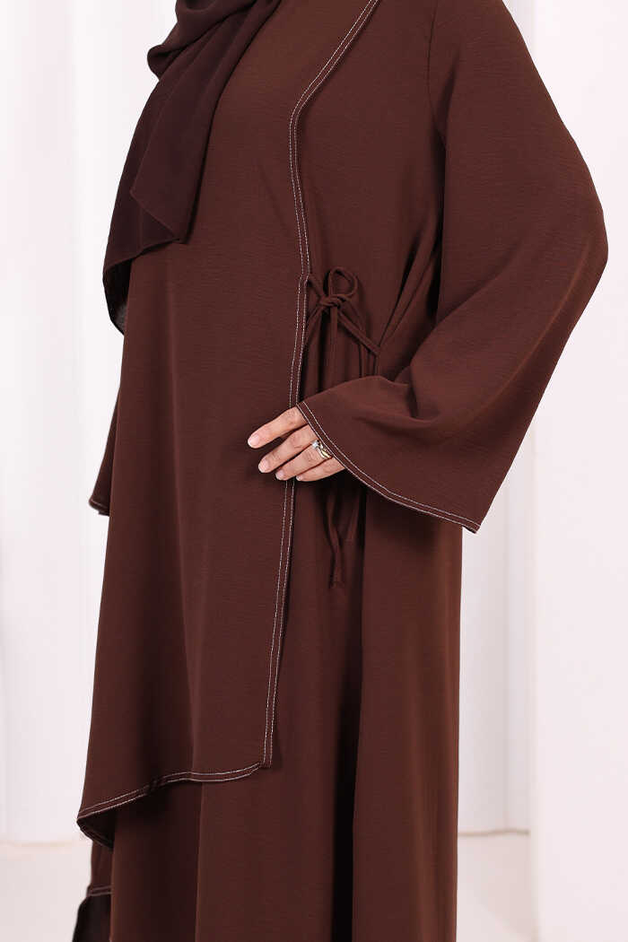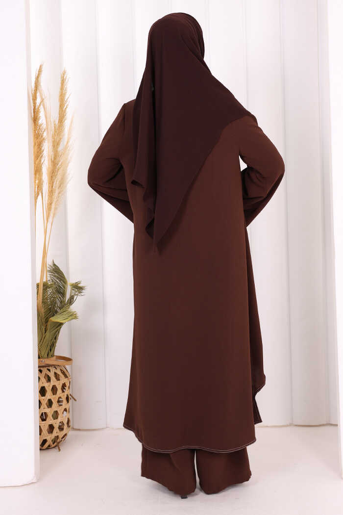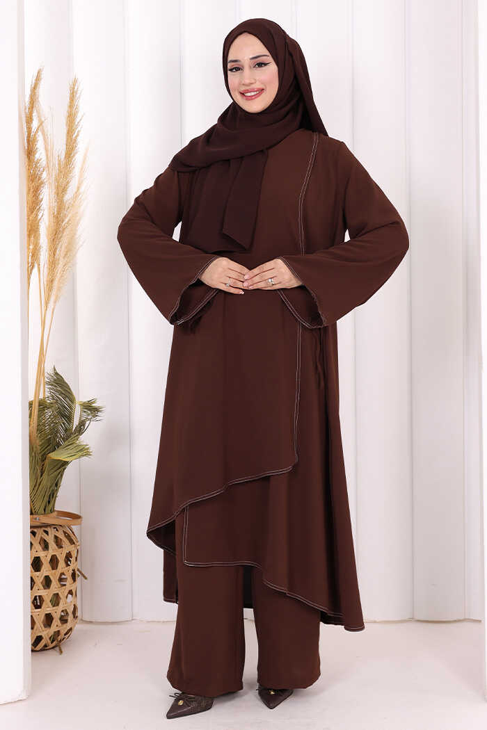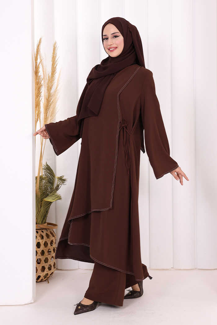 Biyeli Uzun Tunik Pantolon Takım 8005 Kahverengi