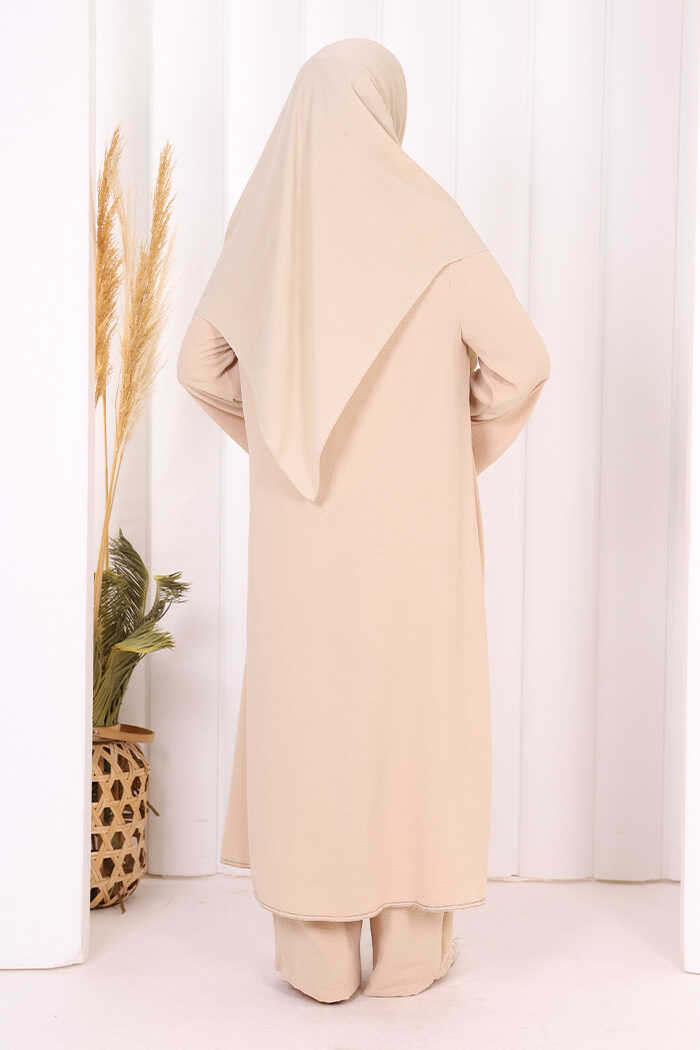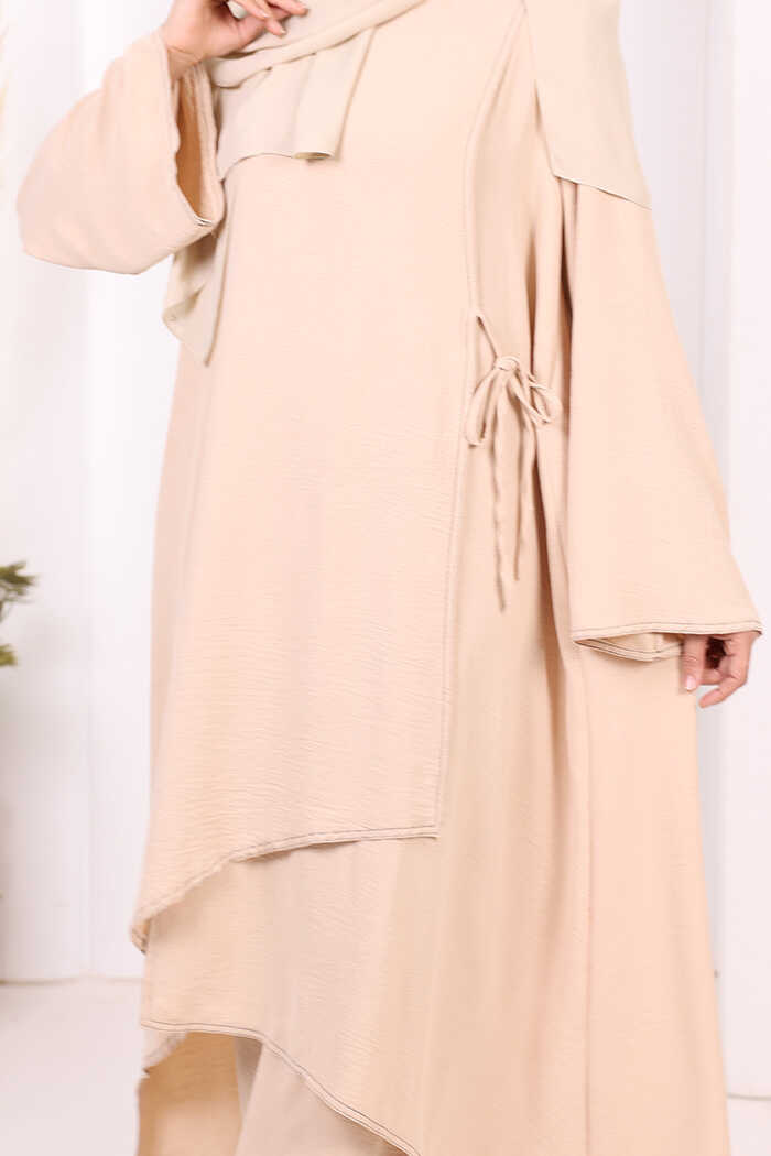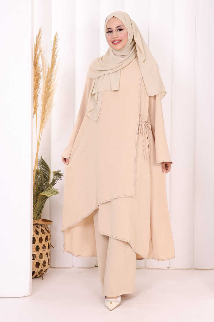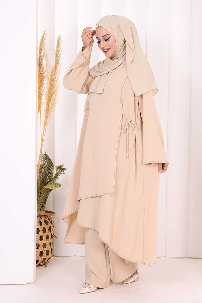 Biyeli Uzun Tunik Pantolon Takım 8005 Taş