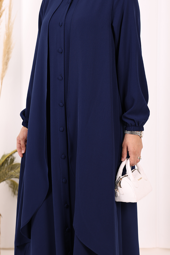 Boydan Düğmeli Elbise 6045 Lacivert
