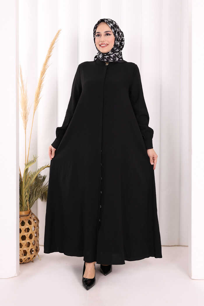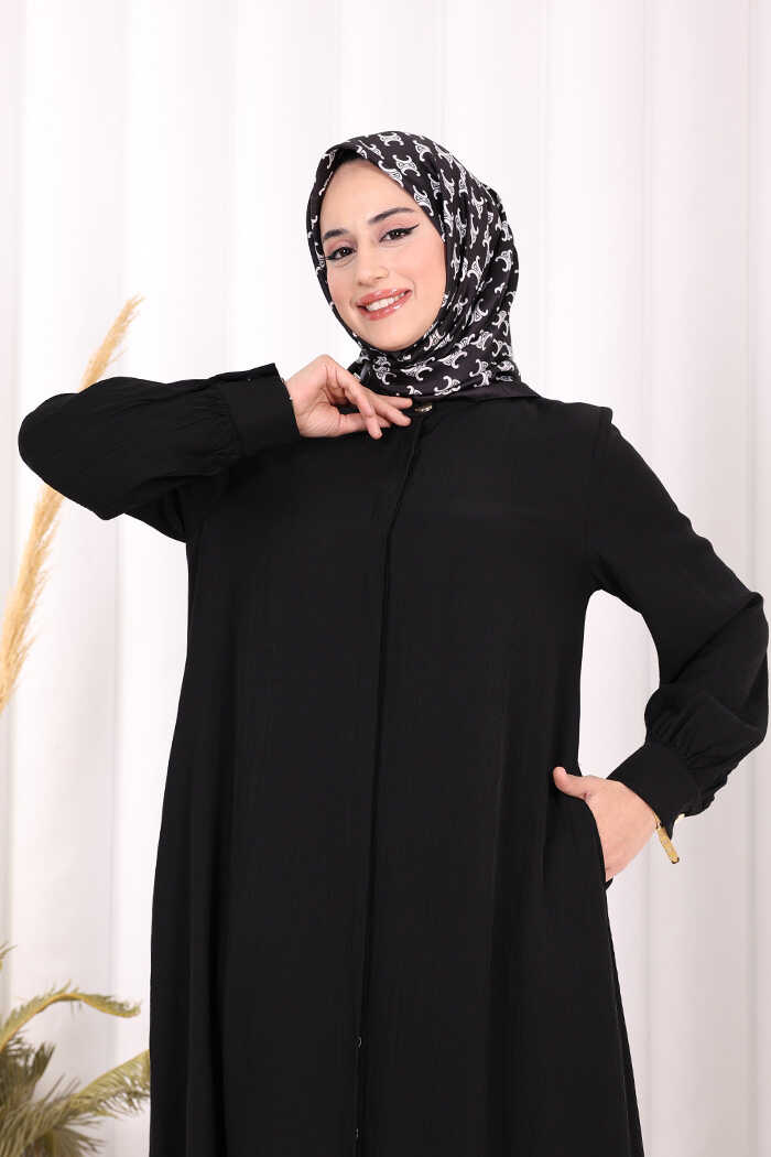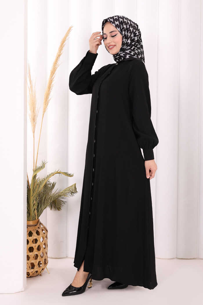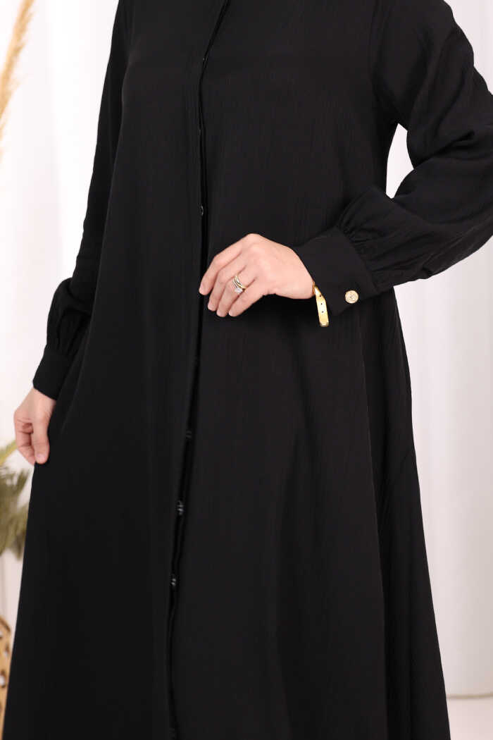 Boydan Düğmeli Elbise 7053 Siyah