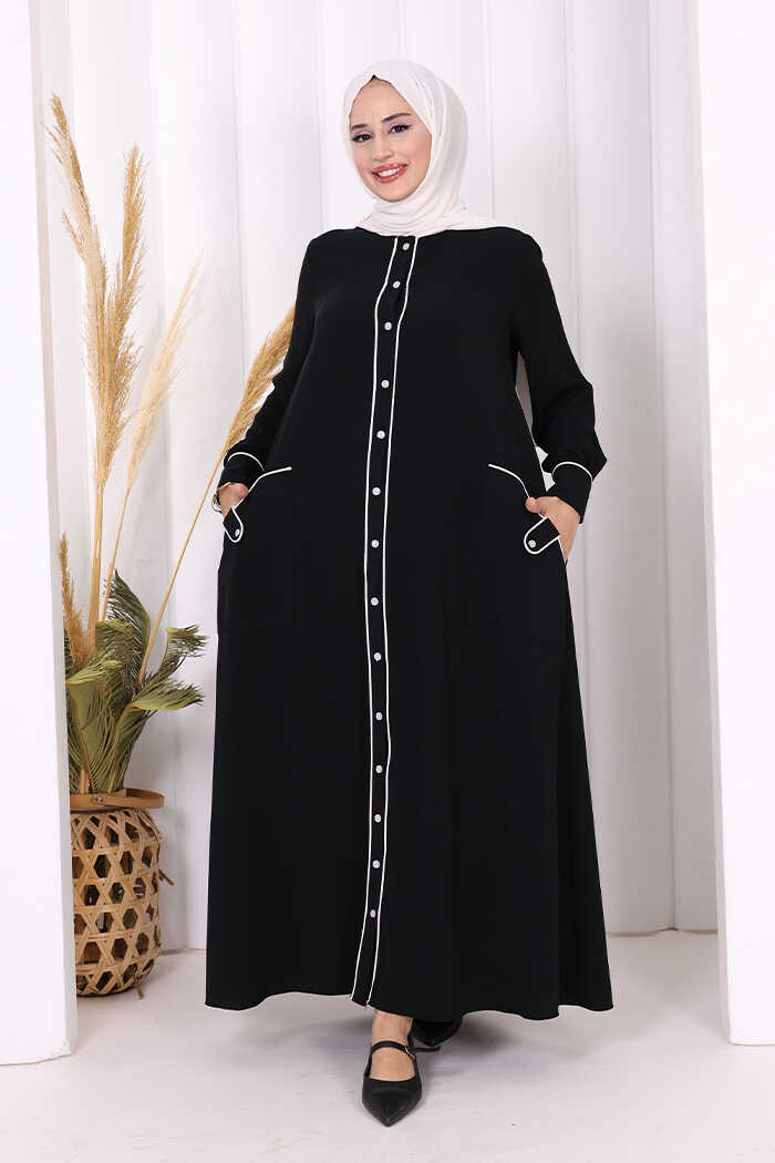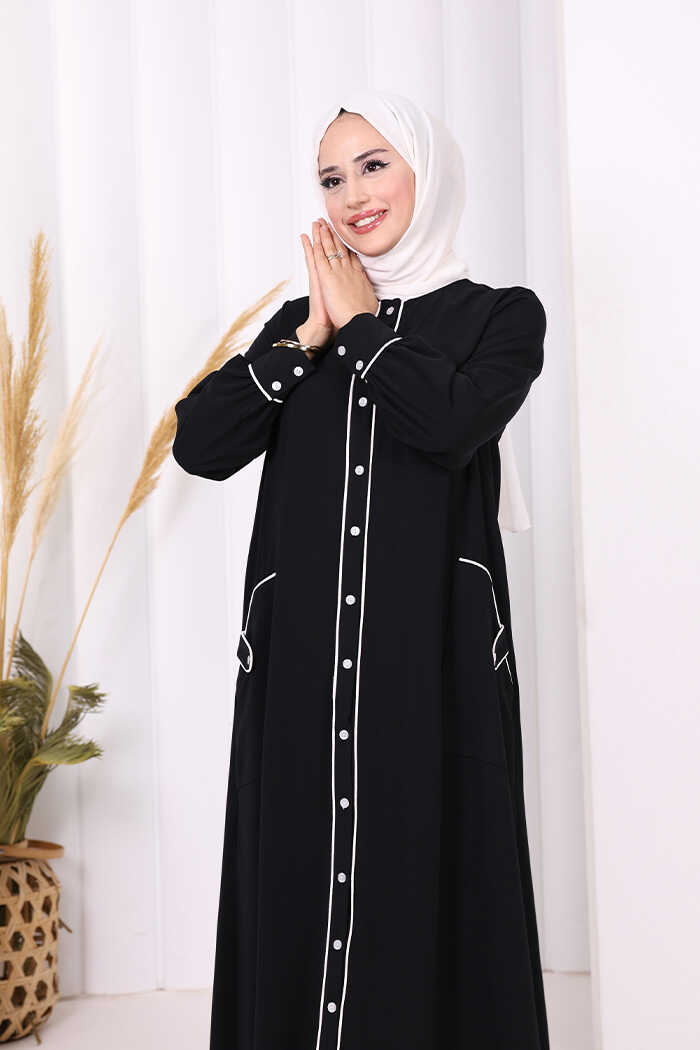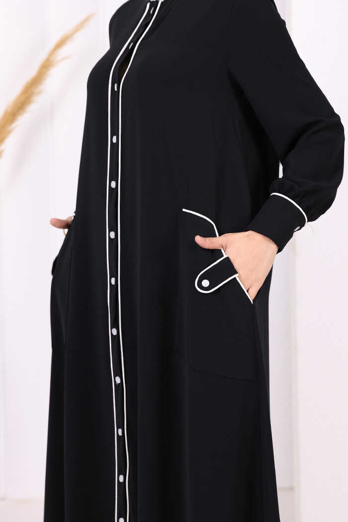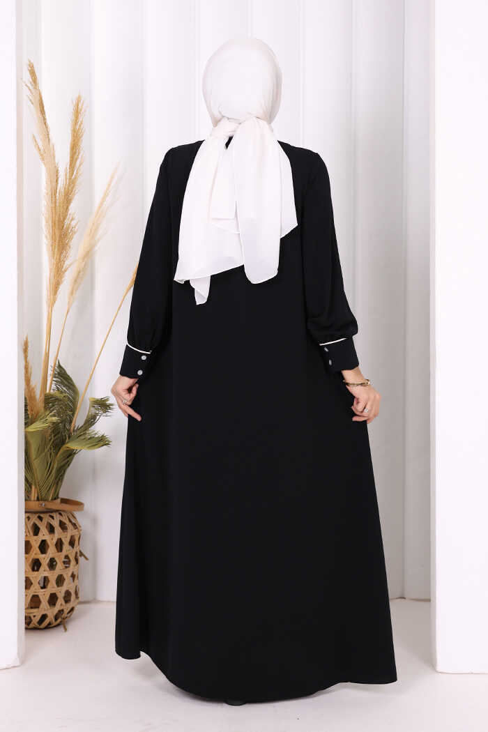 Boydan Düğmeli Ferace Elbise 3975 Siyah