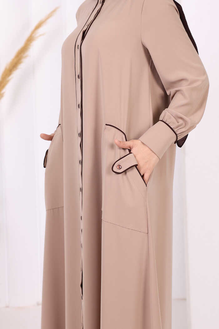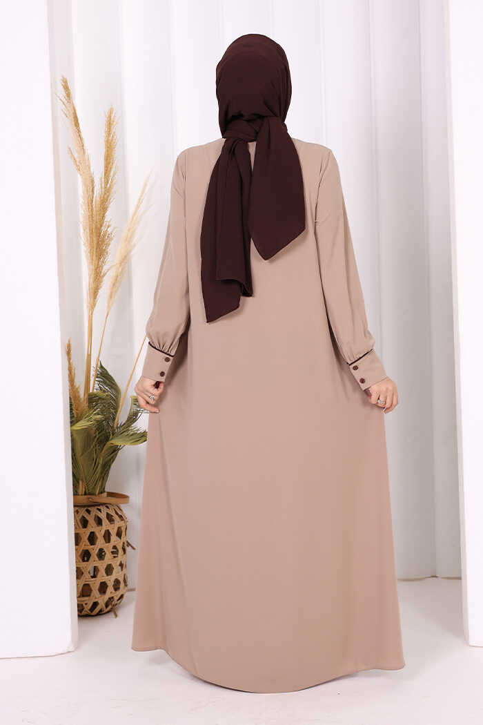 Boydan Düğmeli Ferace Elbise 3975 Vizon