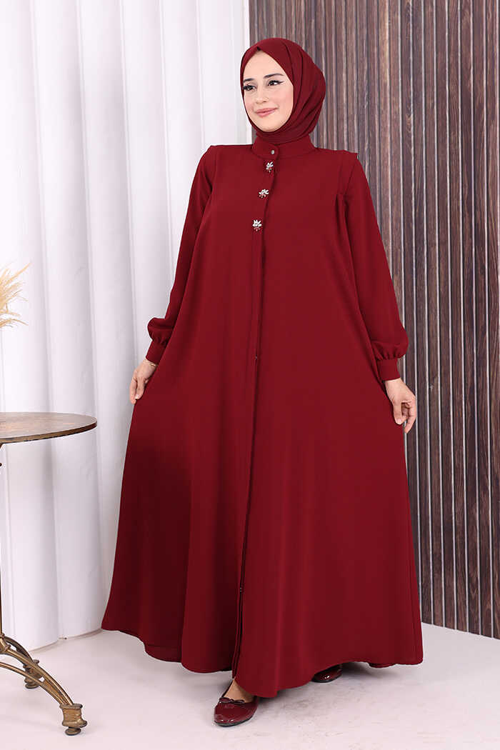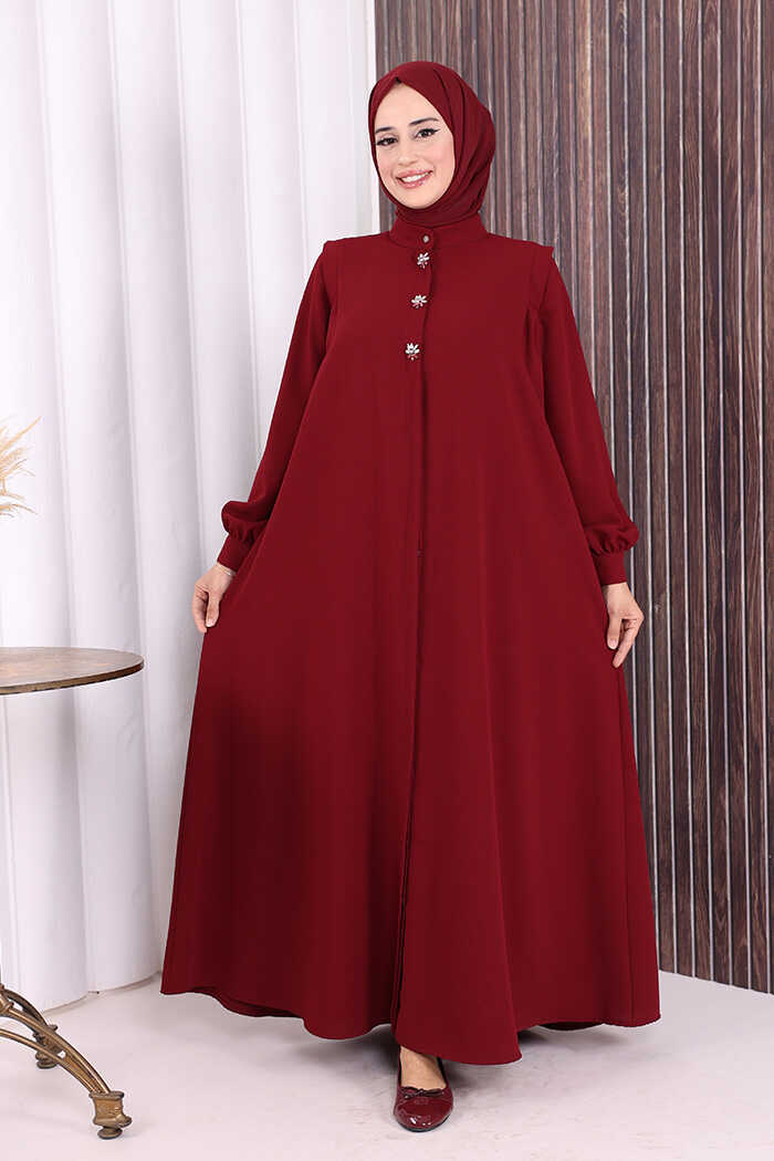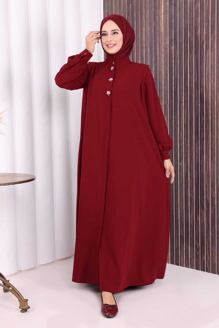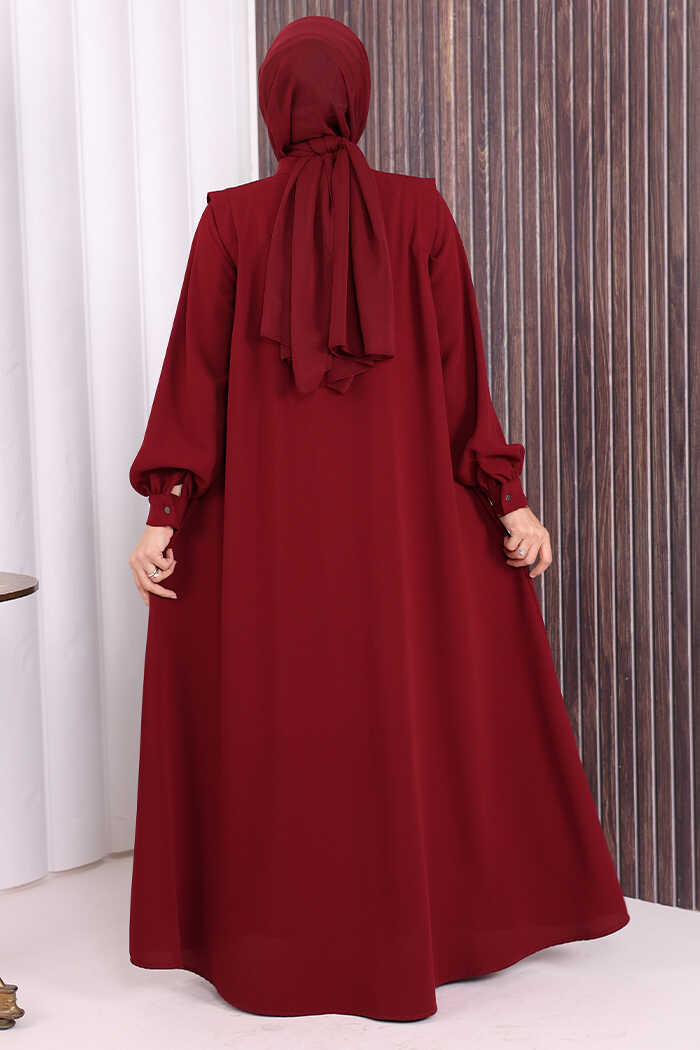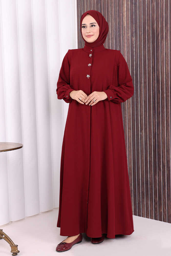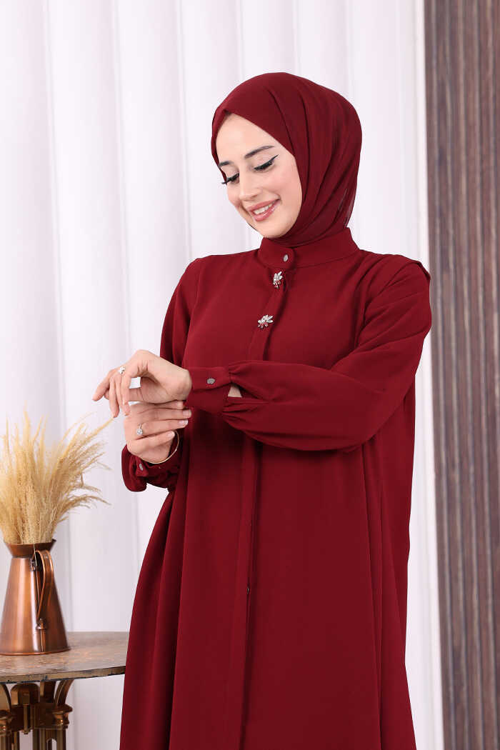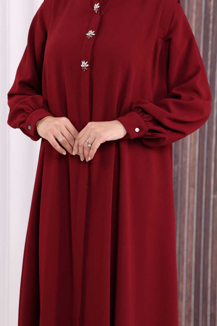 DÜĞMELİ TAŞ İŞLEME DETAYLI ELBİSE: