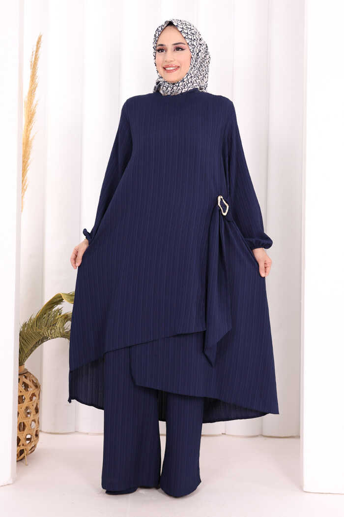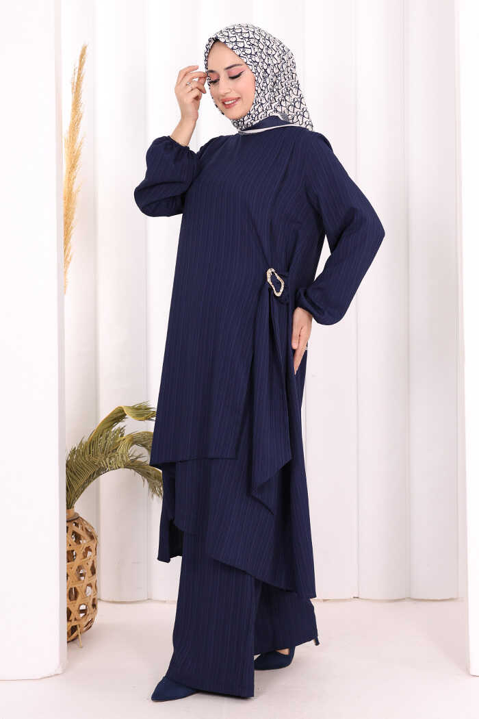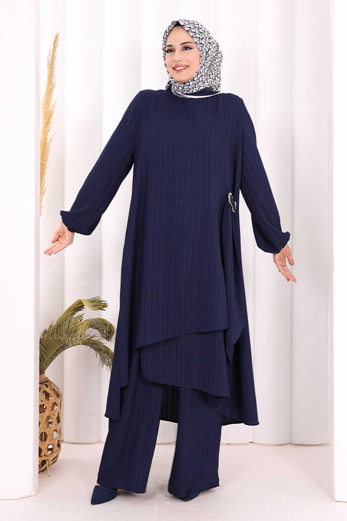Broş Detaylı Pantolon Takım 8011 Lacivert
