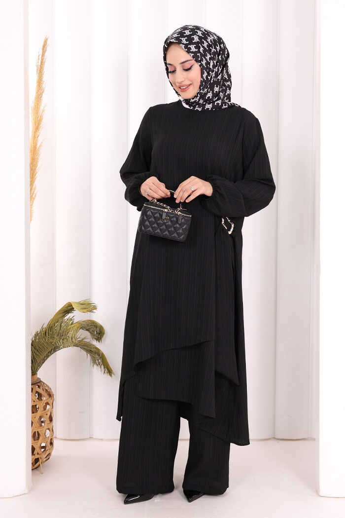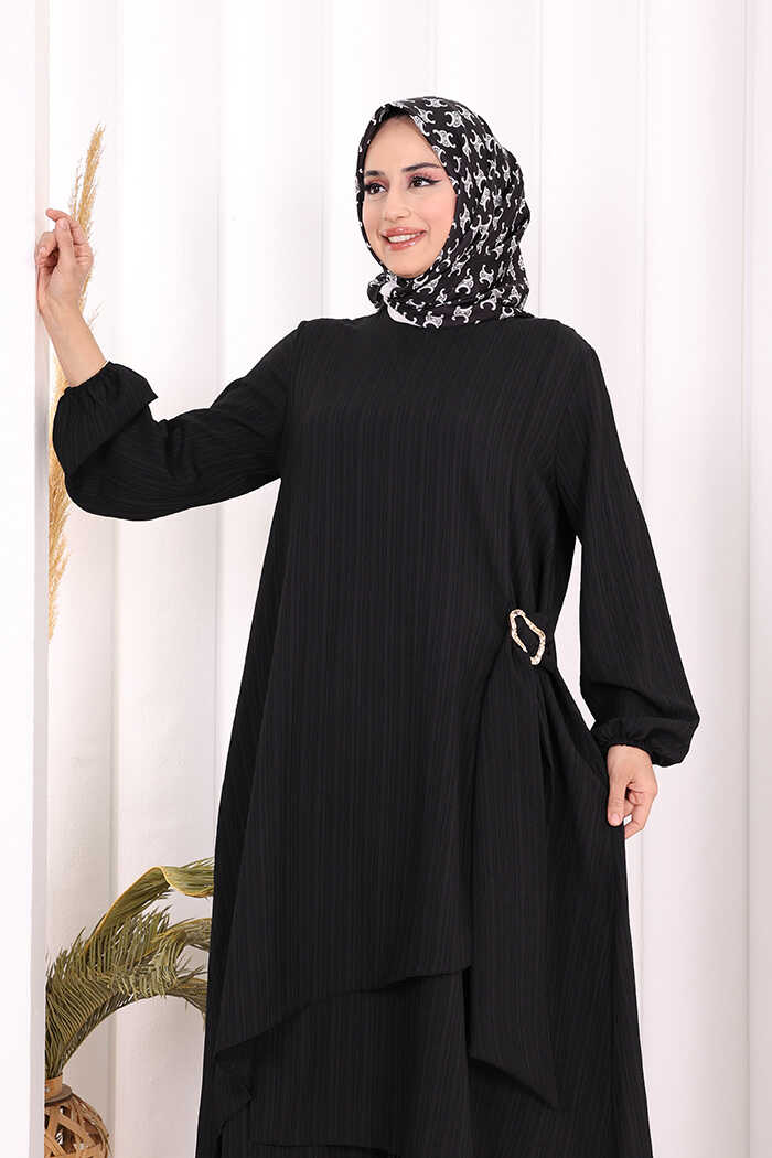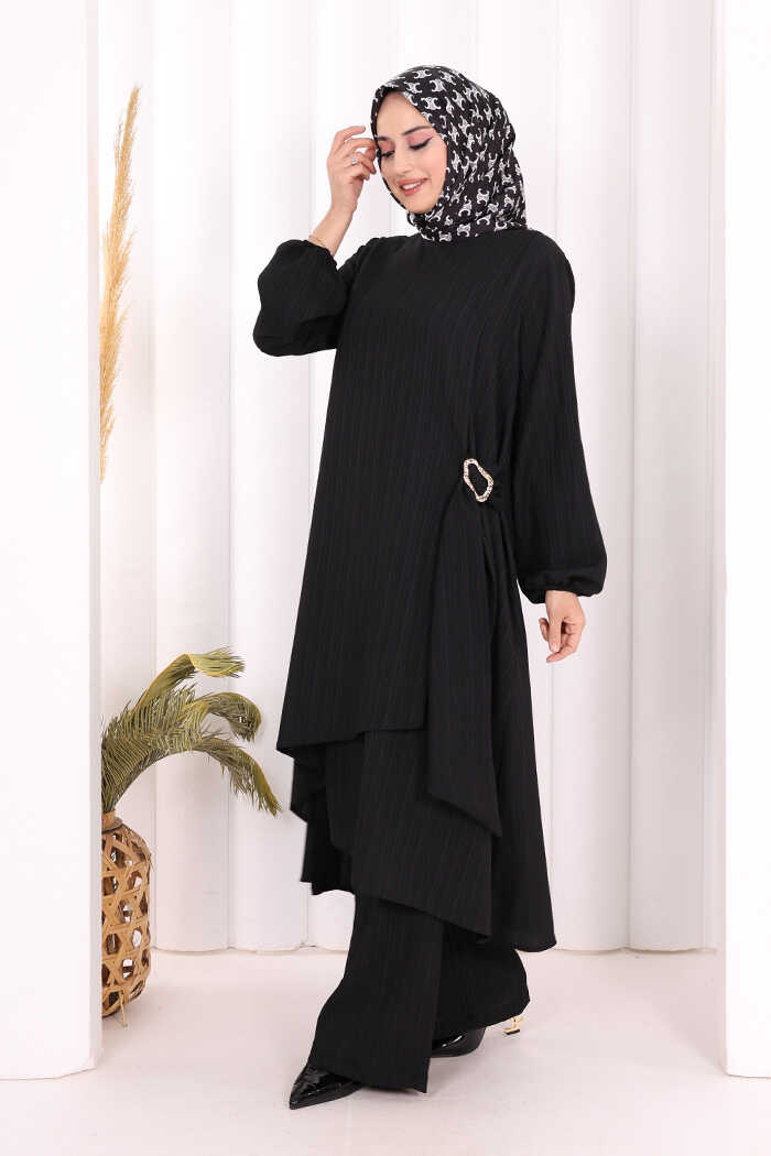 Broş Detaylı Pantolon Takım 8011 Siyah