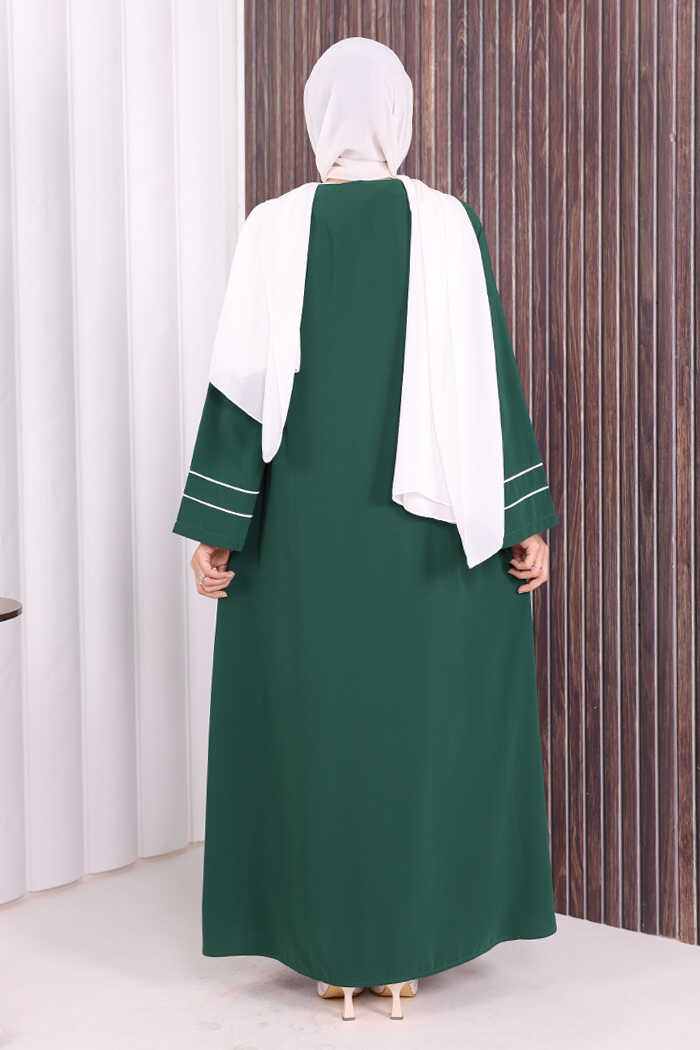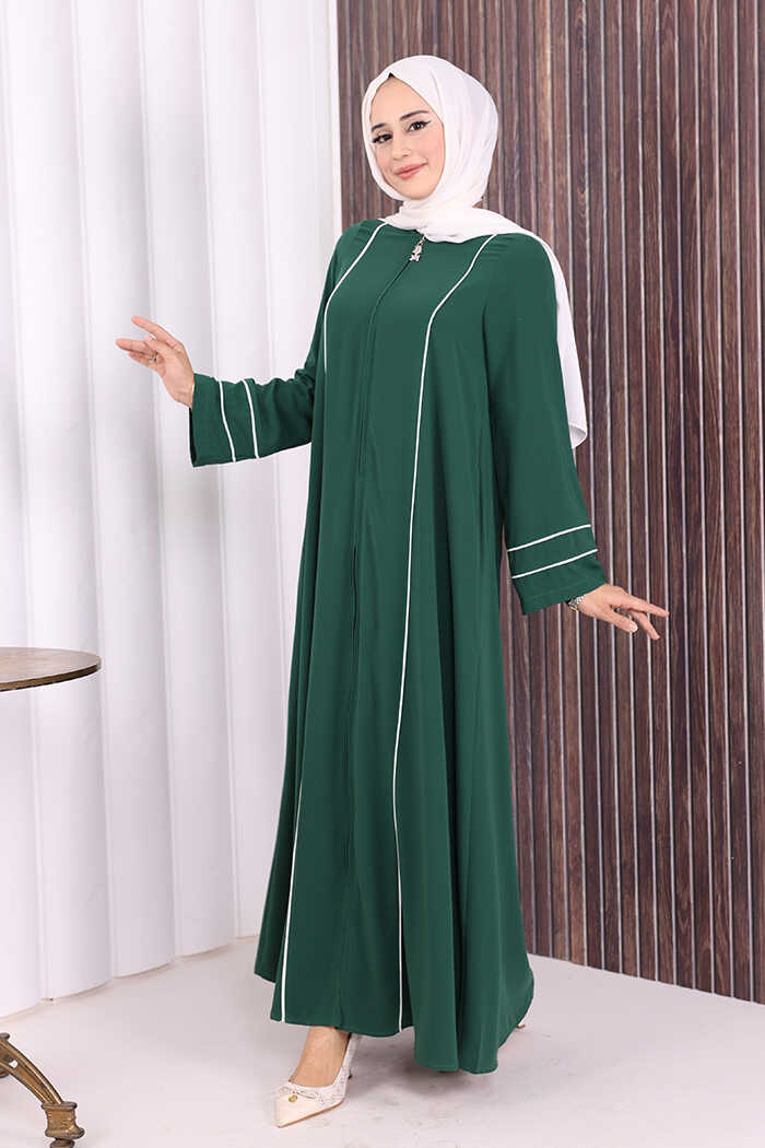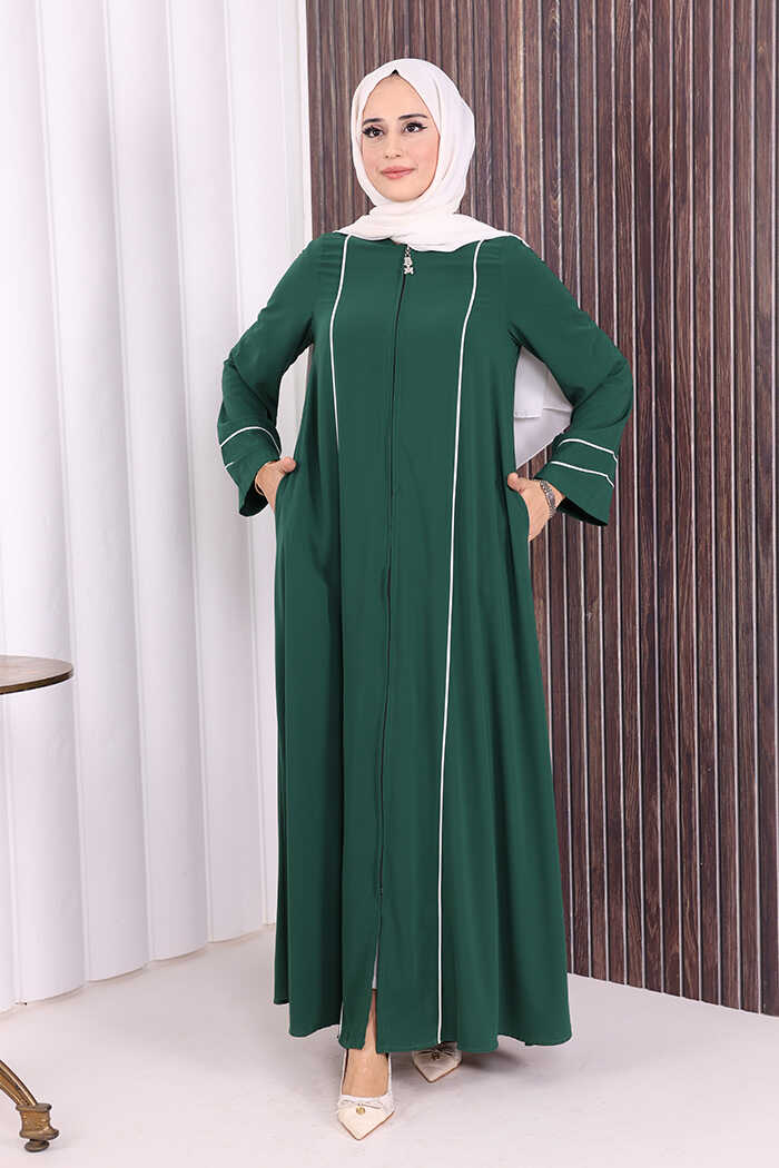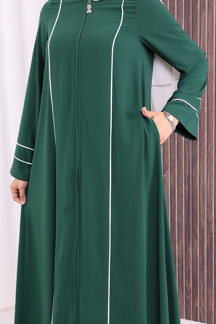 Çizgi Detaylı Boydan Fermuarlı Tam Boy Ferace 6011 Zümrüt