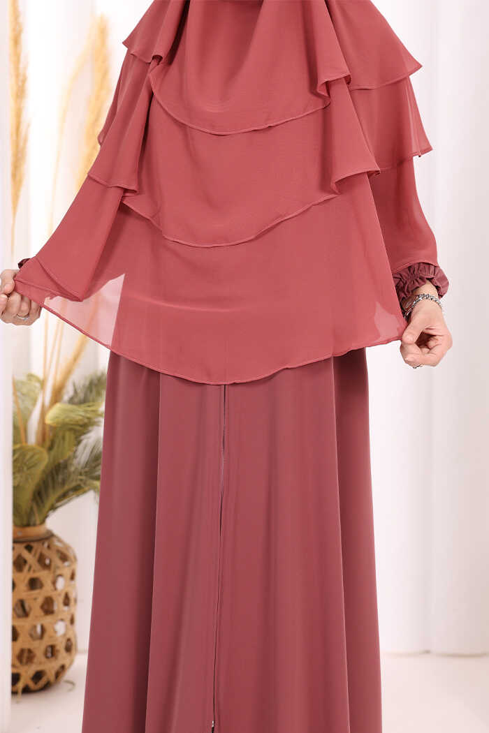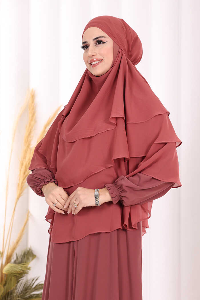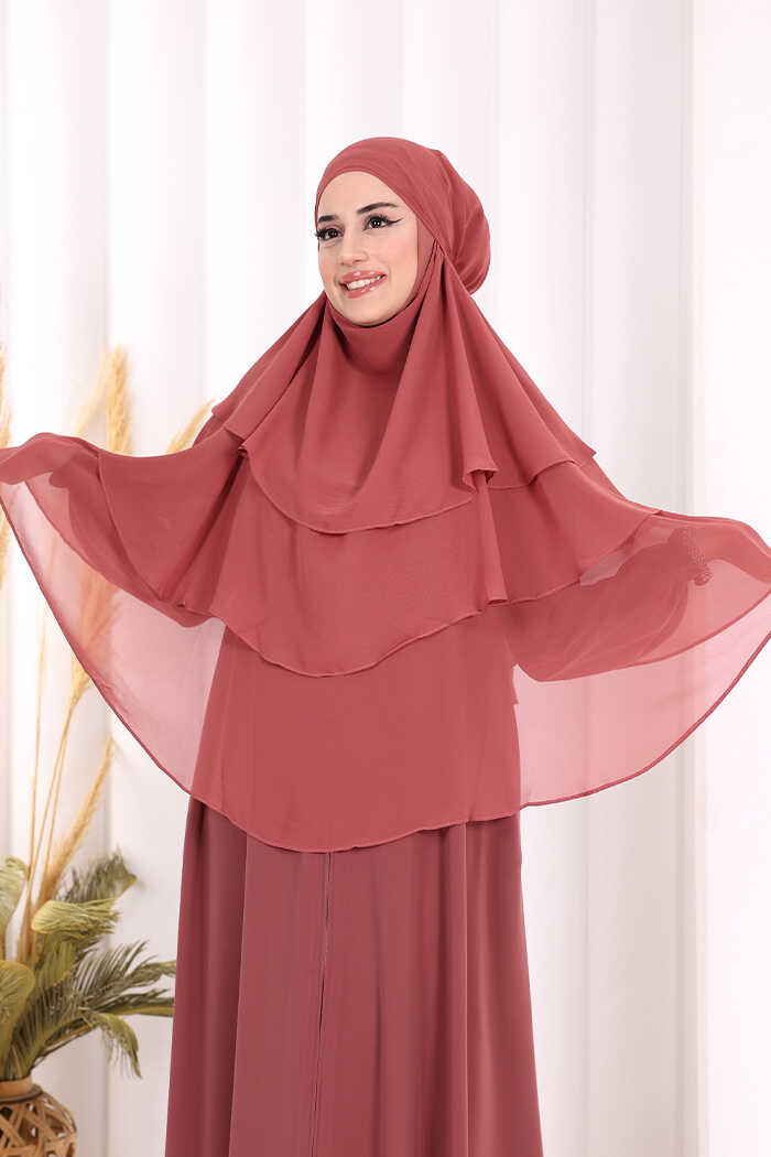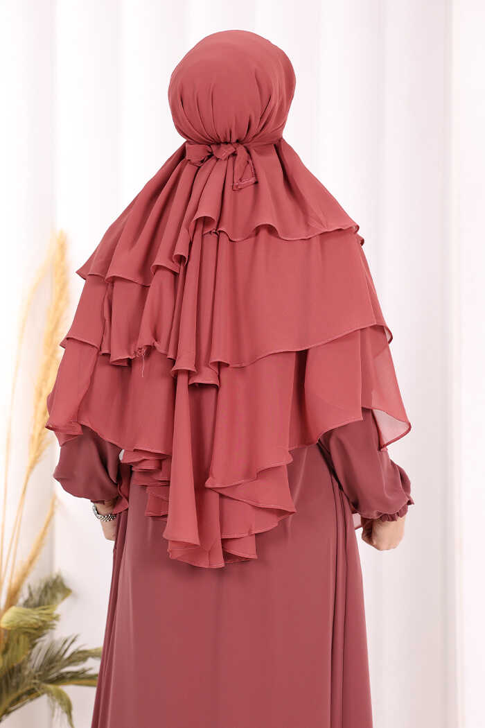 Peçeli 3 Katlı Şifon Sufle Şal 6012 Gül Kurusu