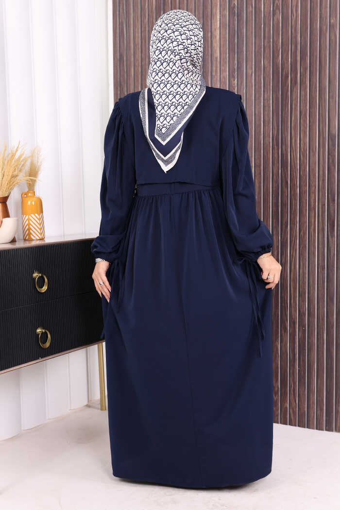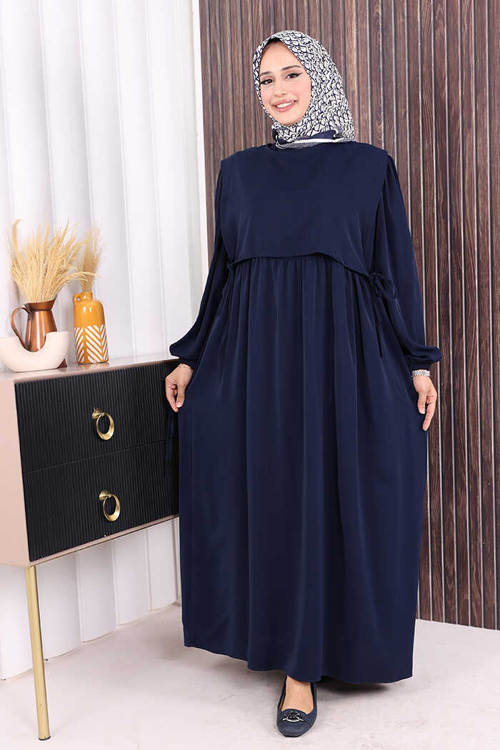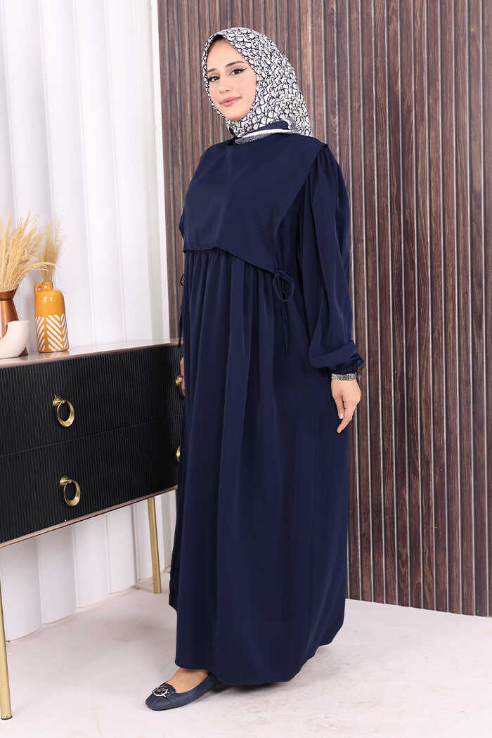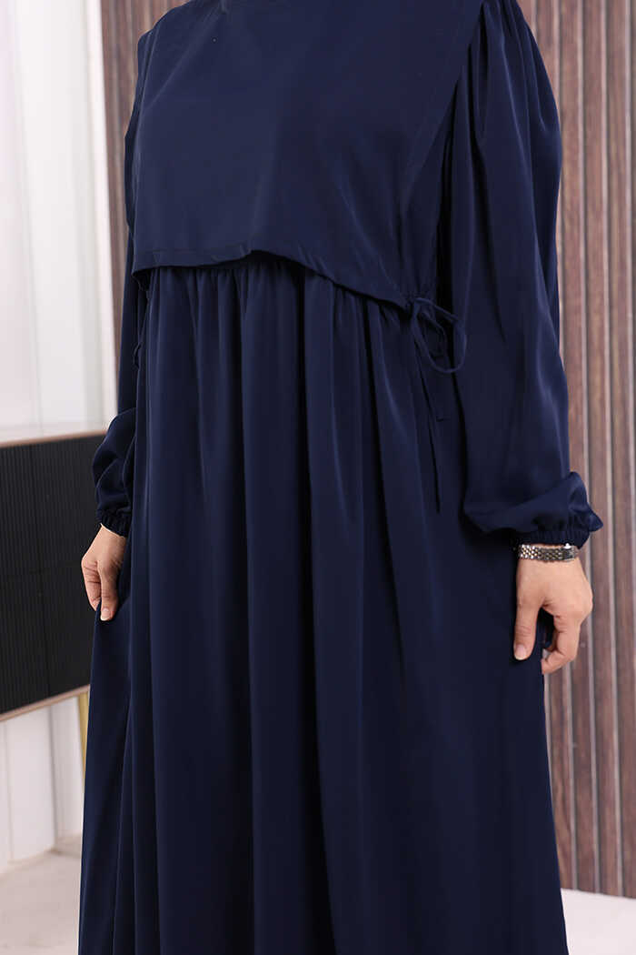 Çift Katlı Bağlama Detay Elbise 6003 Lacivert