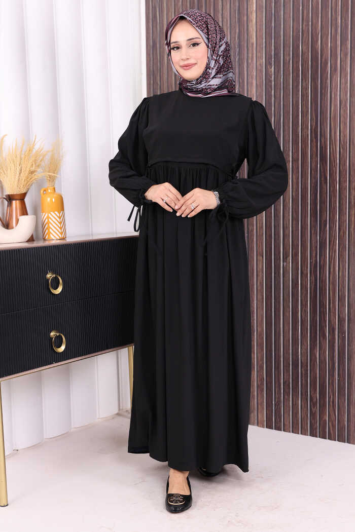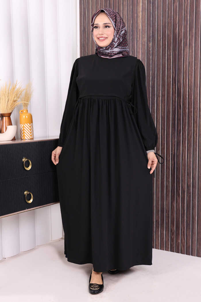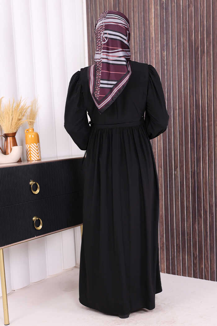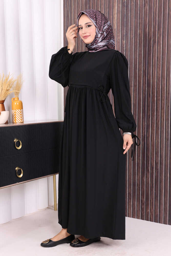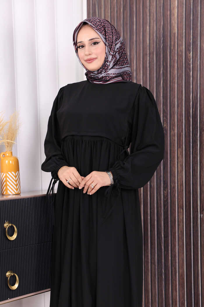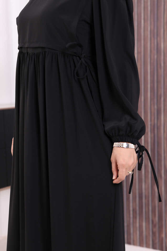 Çift Katlı Bağlama Detay Elbise 6003 Siyah
