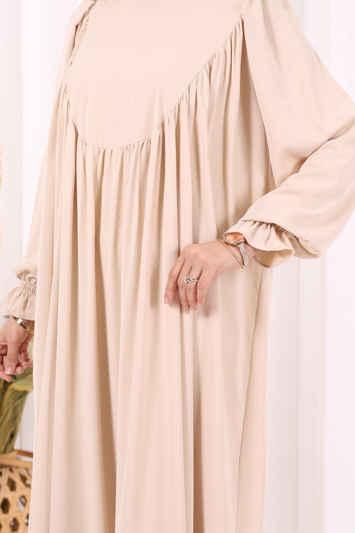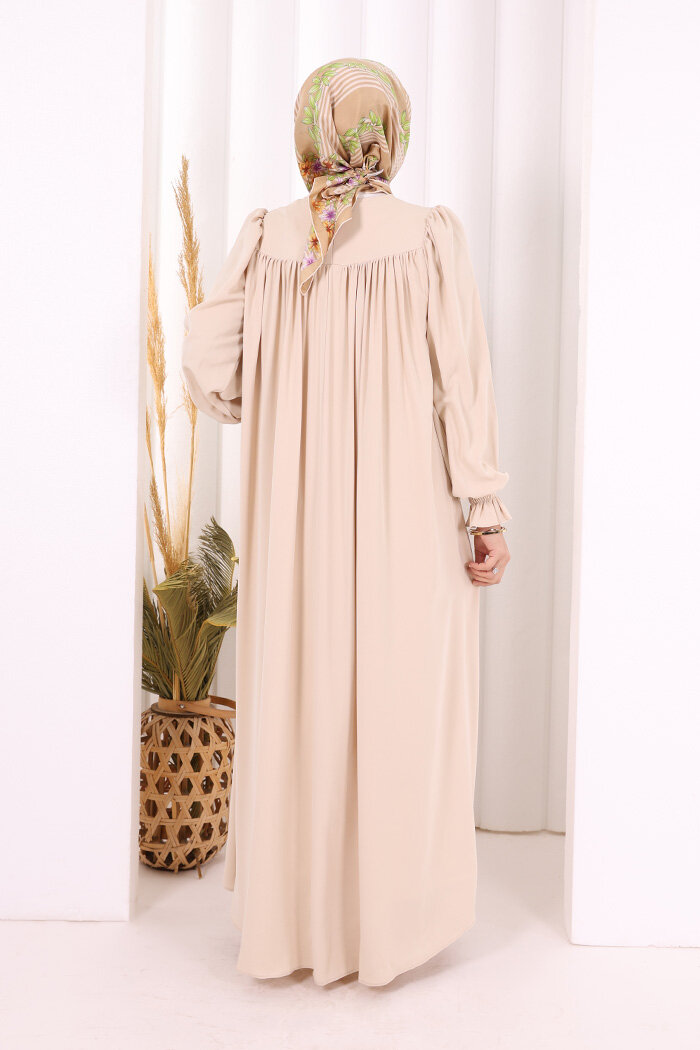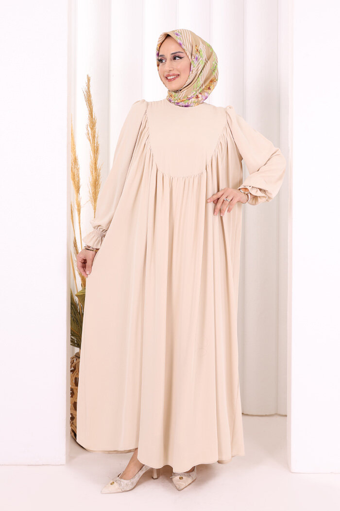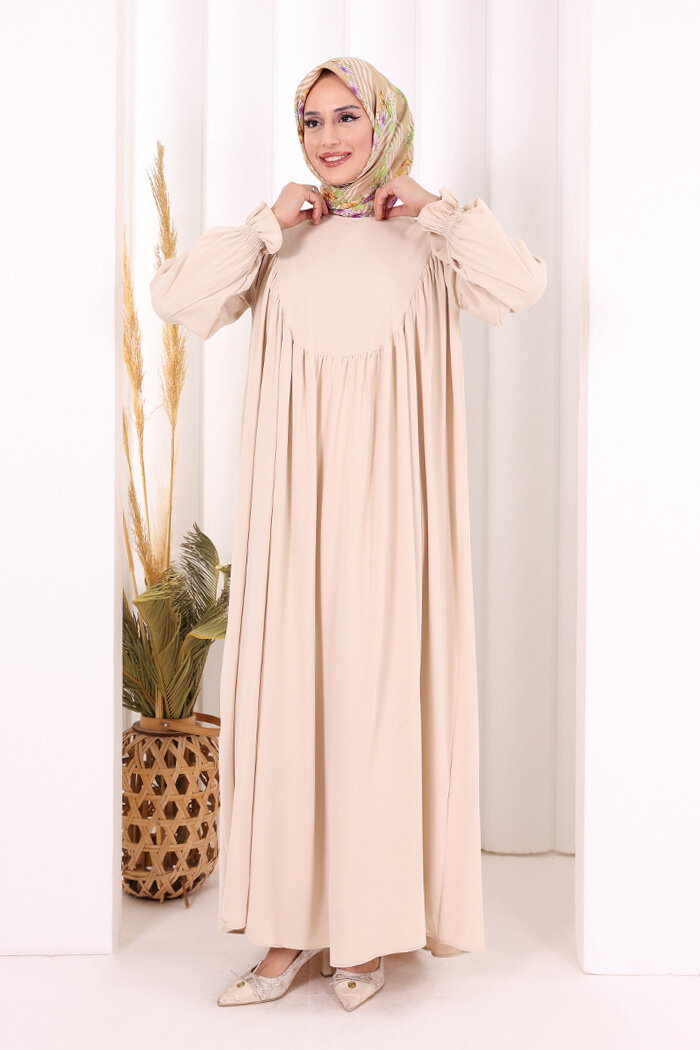 Kol Manşetleri Büzgülü Elbise 6004 Taş