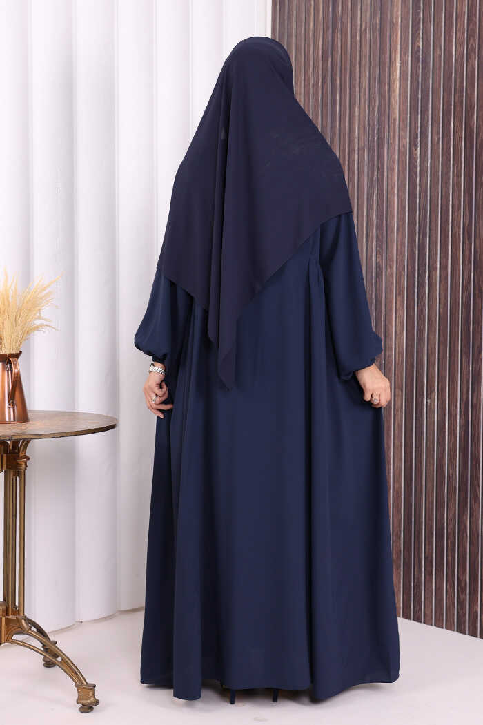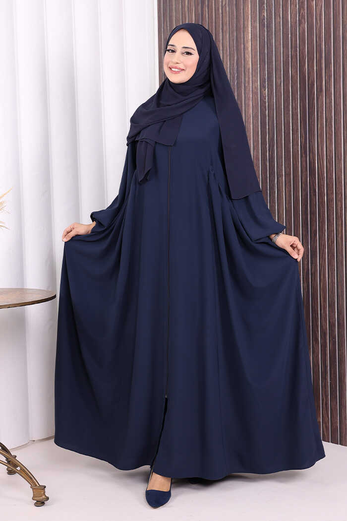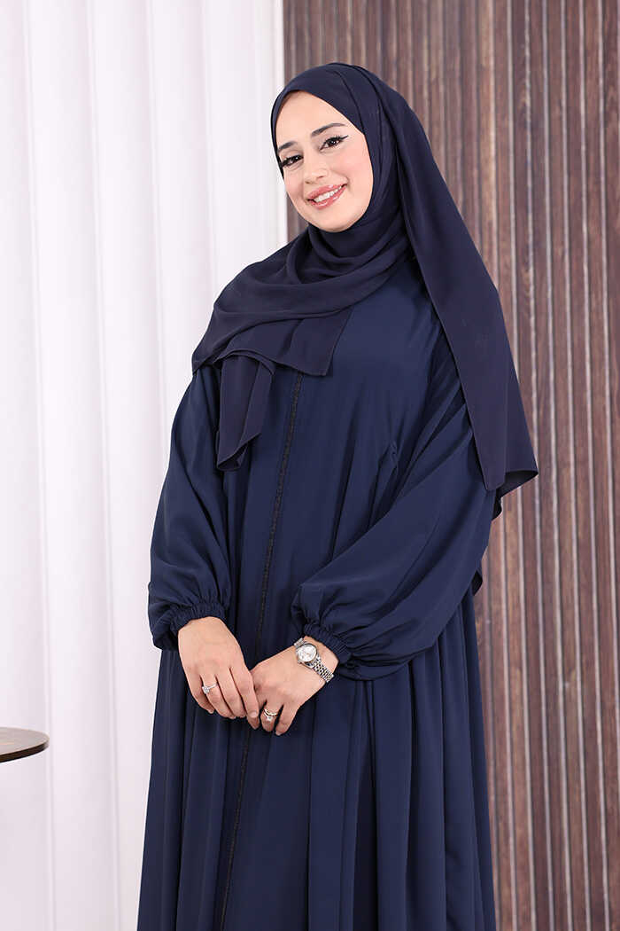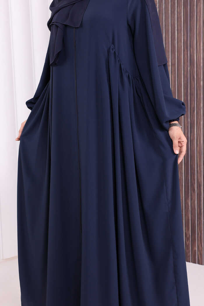 Oval Büzgülü Kol Manşetleri Lastikli Fermuarlı Tam Boy Ferace 6005 Lacivert