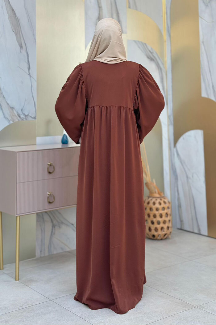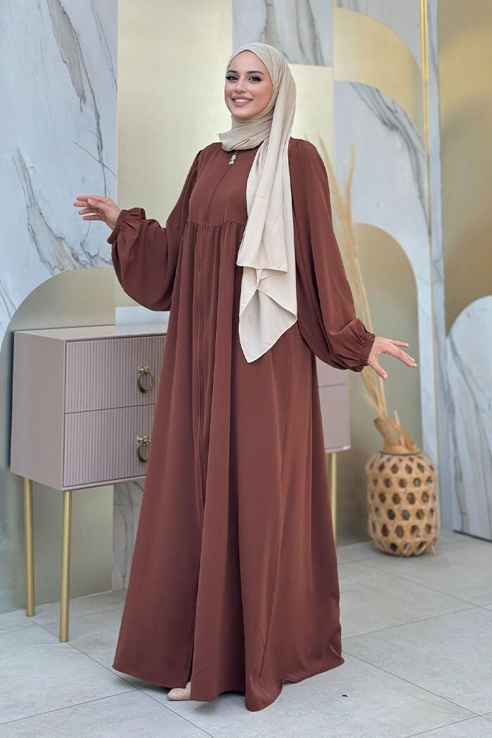 Kol Büzgü Detay Fermuarlı Salaş Ferace 6006 Kahverengi