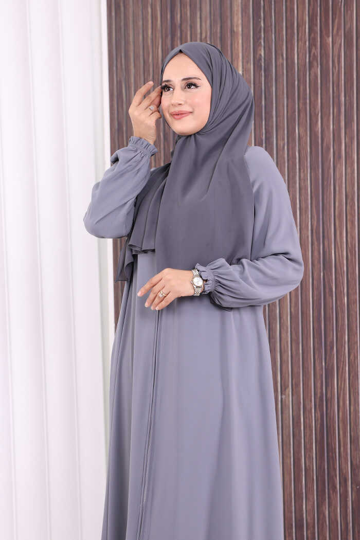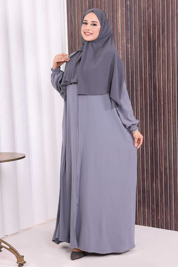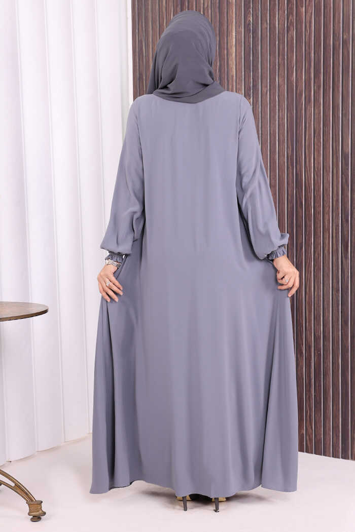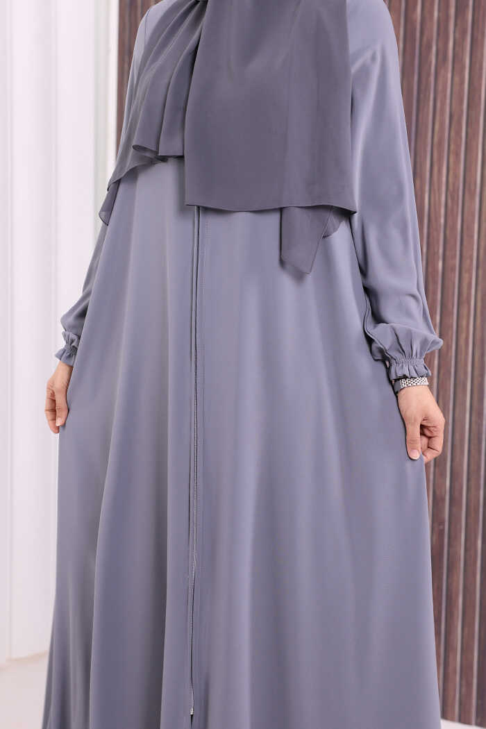 Fermuarlı Kol Manşetleri Büzgülü Mevlana Ferace 6007 Gri