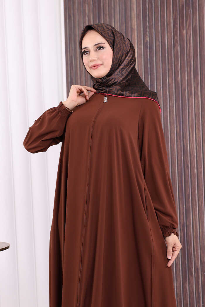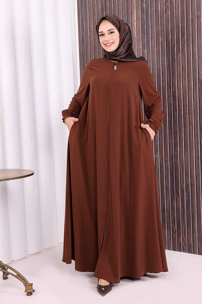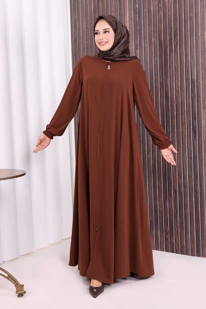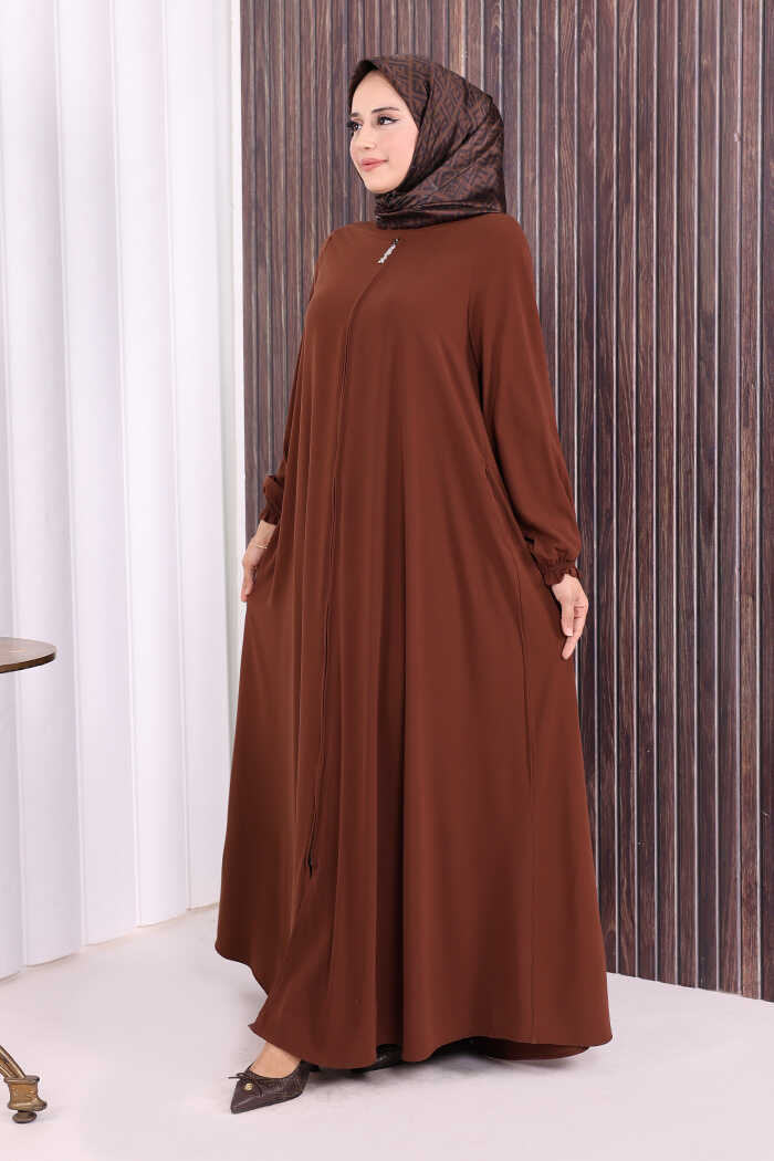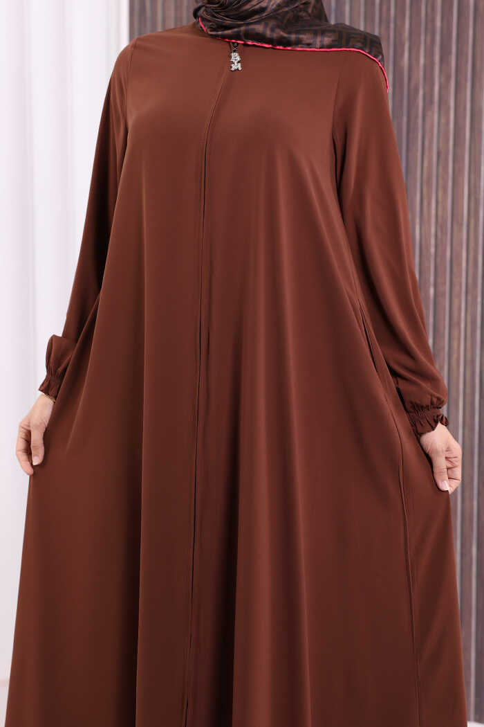 Fermuarlı Kol Manşetleri Büzgülü Mevlana Ferace 6007 Kahverengi
