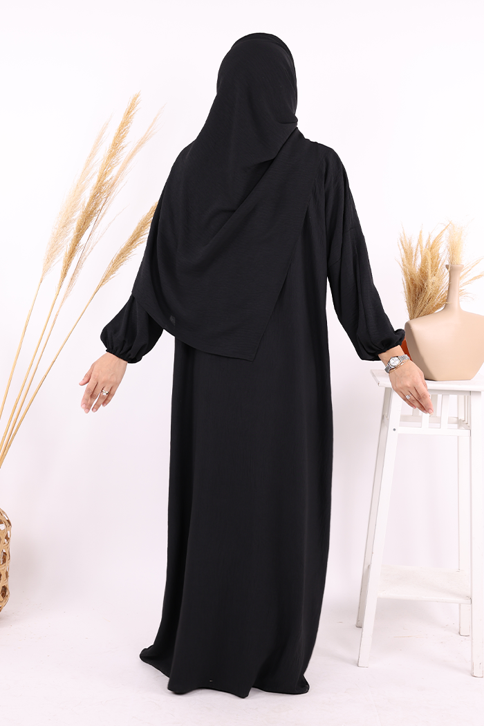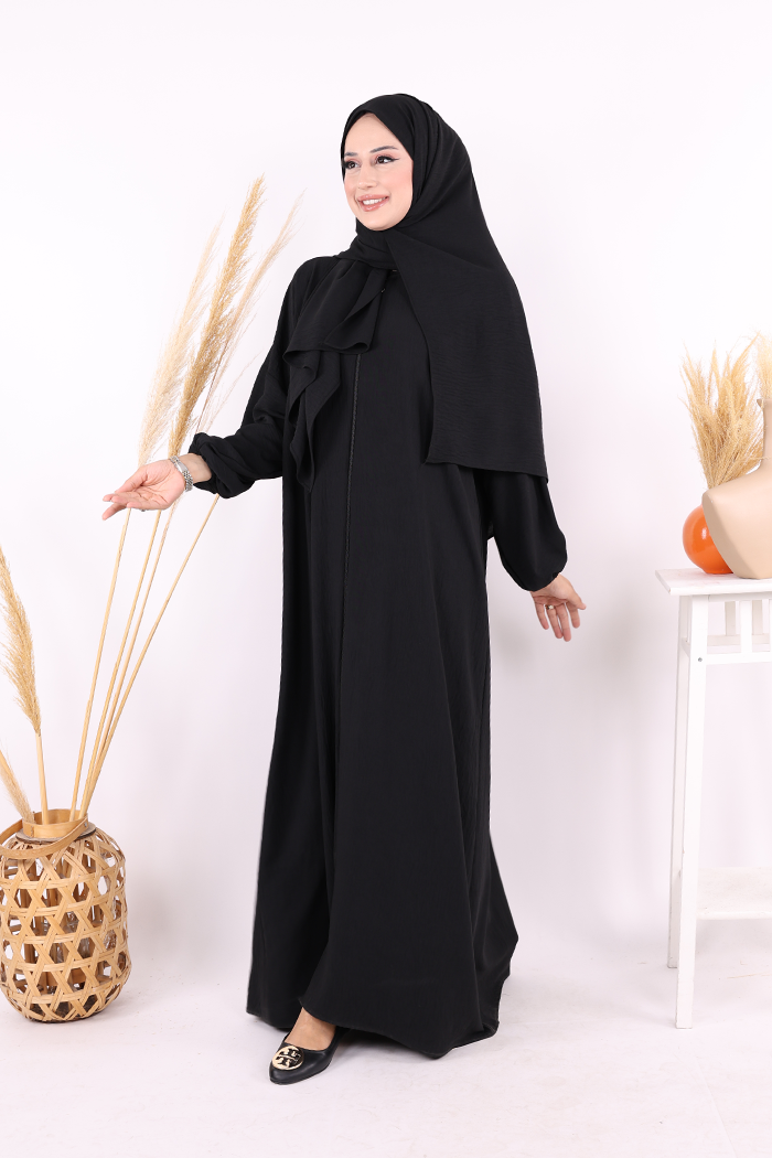 Fermuarlı Kol Manşetleri Büzgülü Mevlana Ferace 6007 Siyah