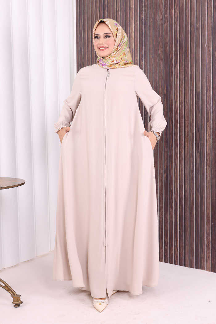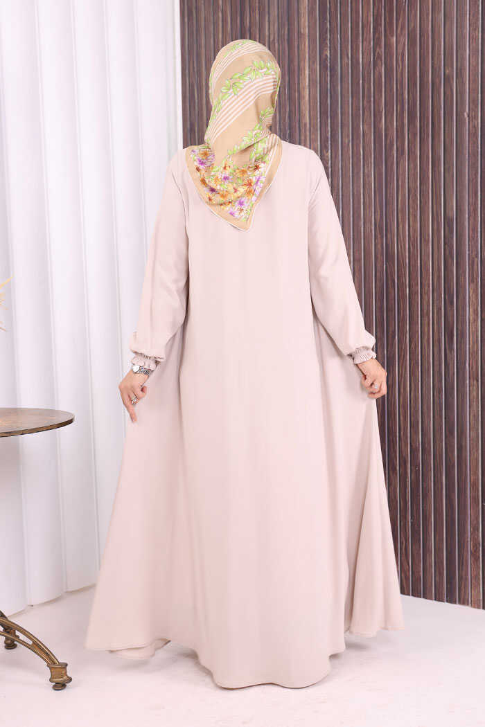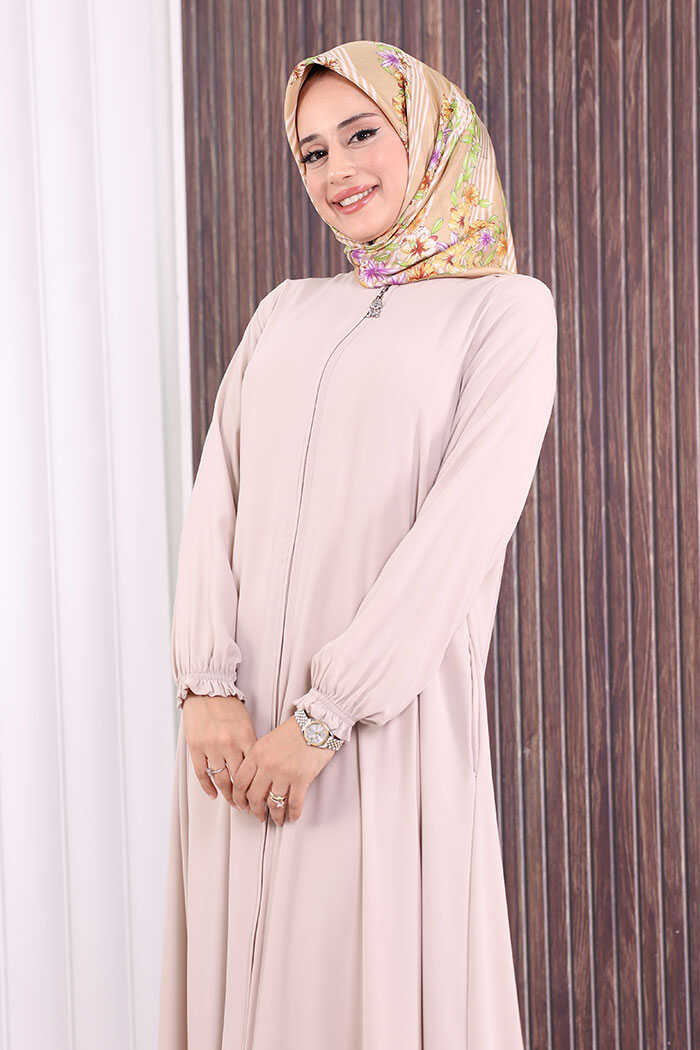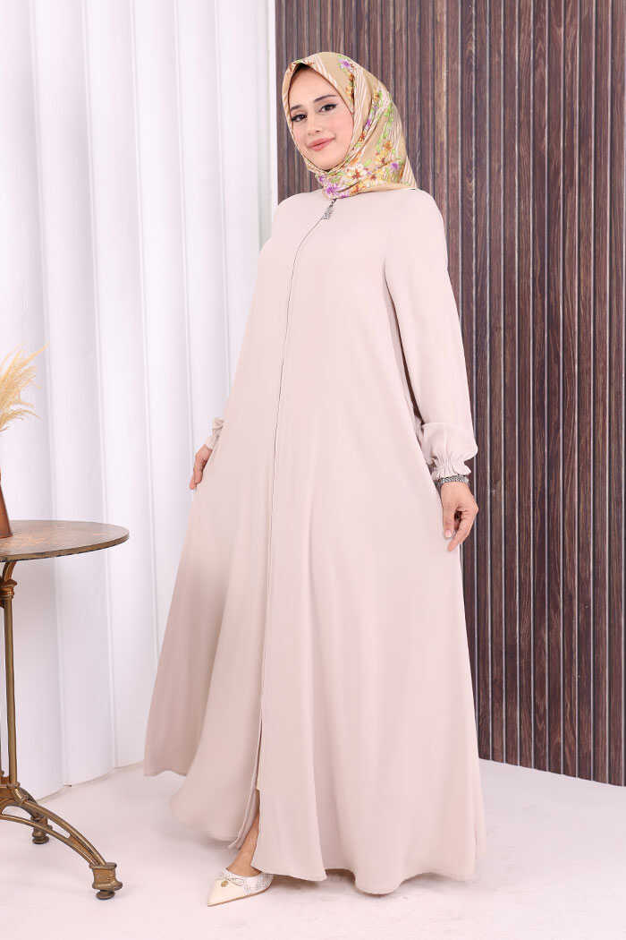 Fermuarlı Kol Manşetleri Büzgülü Mevlana Ferace 6007 Taş