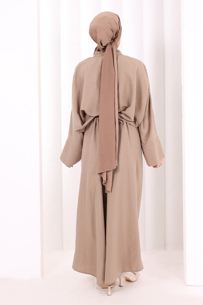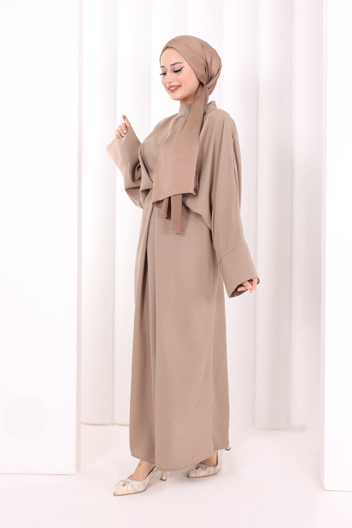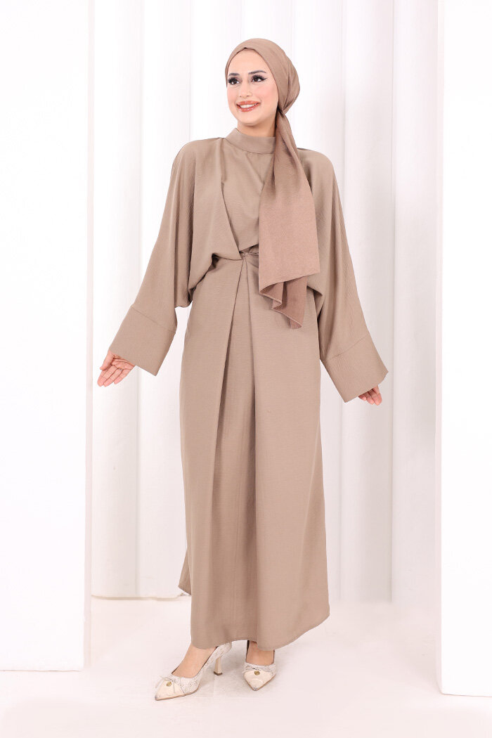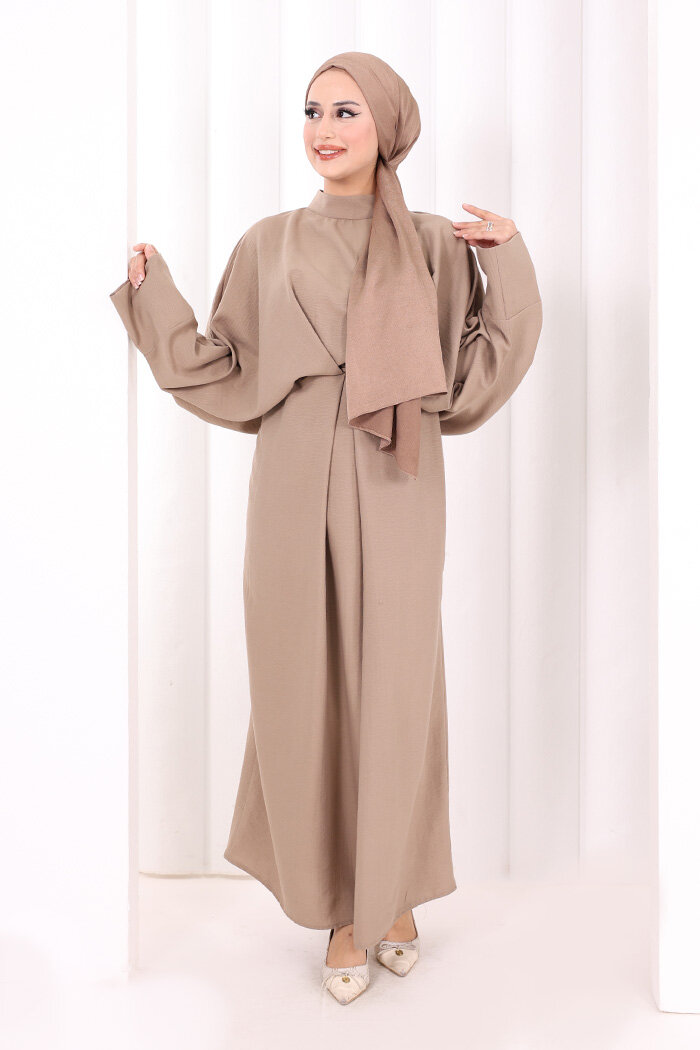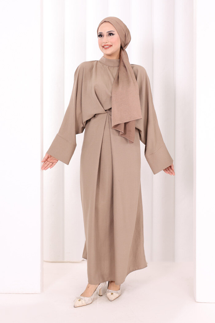 Çapraz Bağlamalı İpli Elbise 6083 Vizon