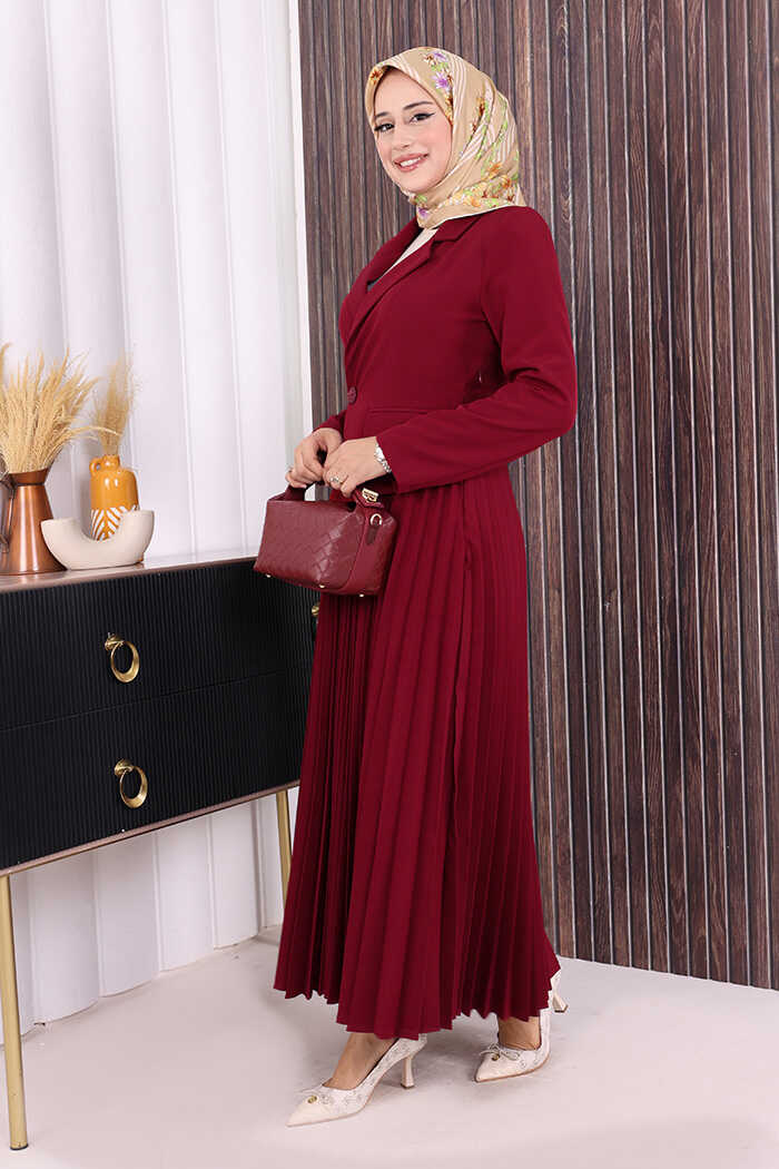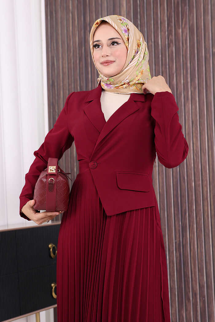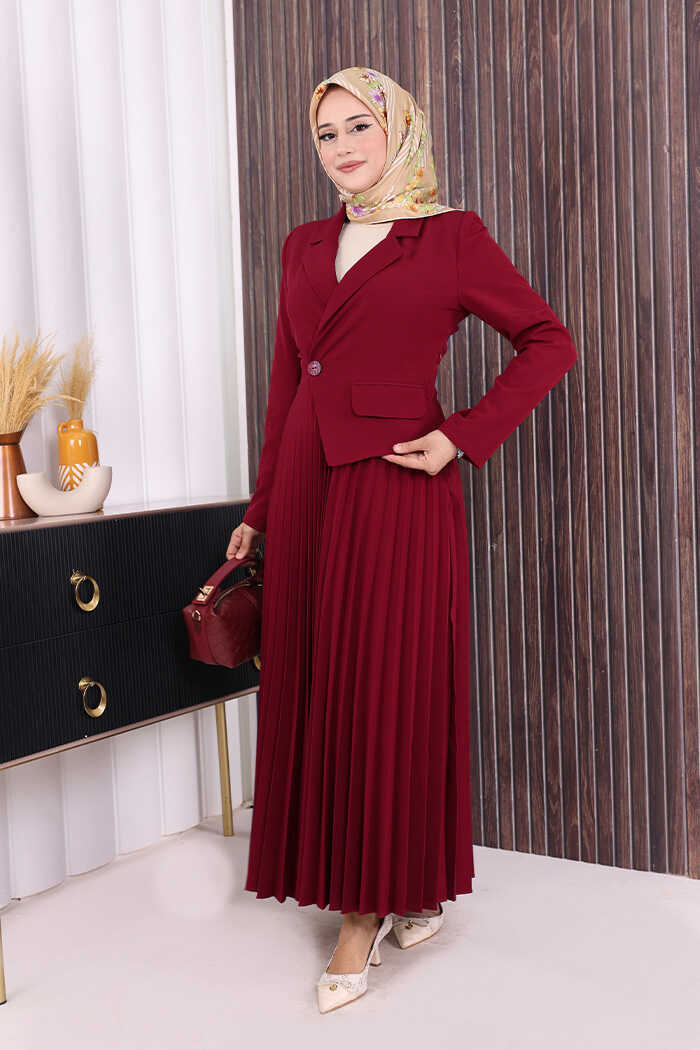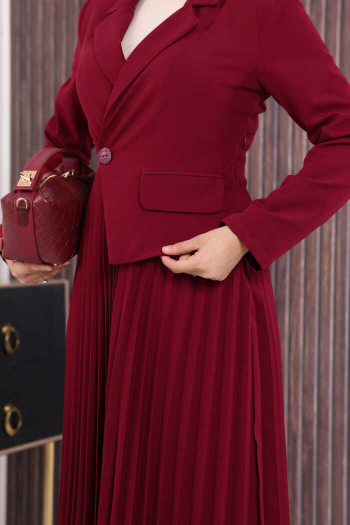 CEKET GÖRÜNÜMLÜ ETEĞİ PİLİSELİ ELBİSE