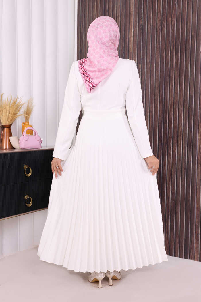 Ceket Görünümlü Eteği Piliseli Elbise 3700 Ekru