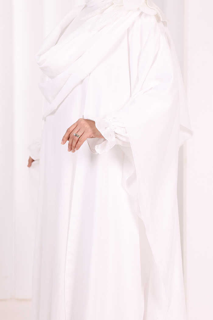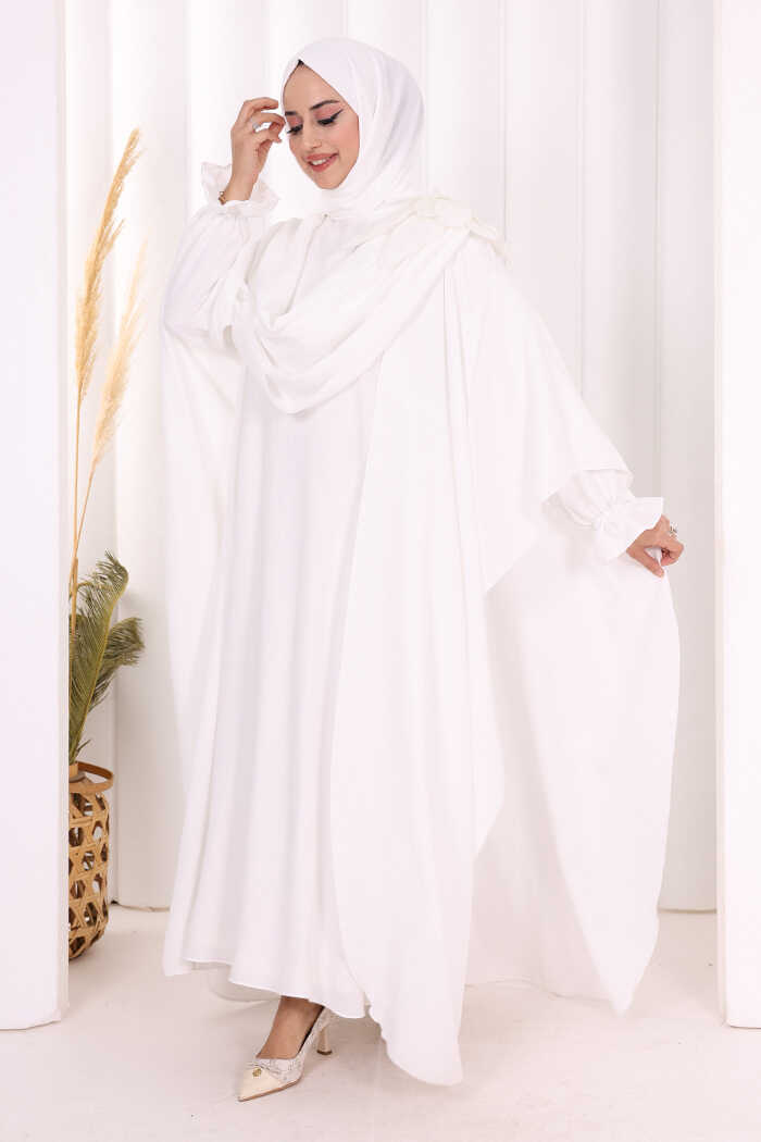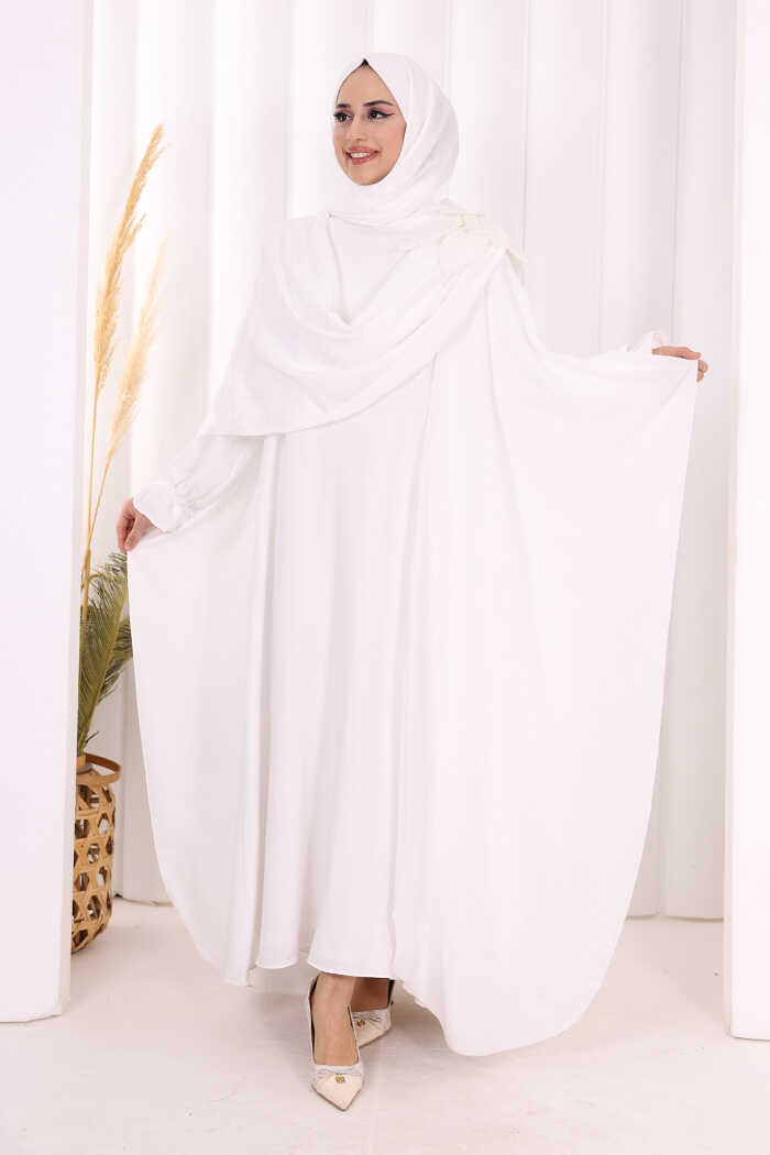 Çiçek Detaylı Elbise Abaya Takım 8009 Ekru