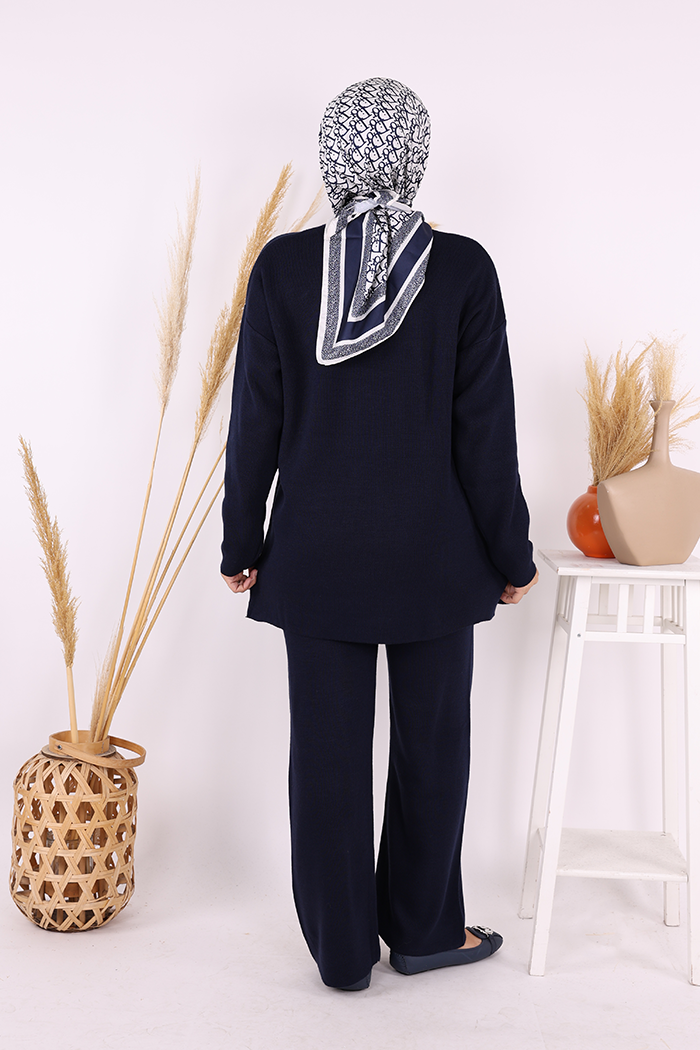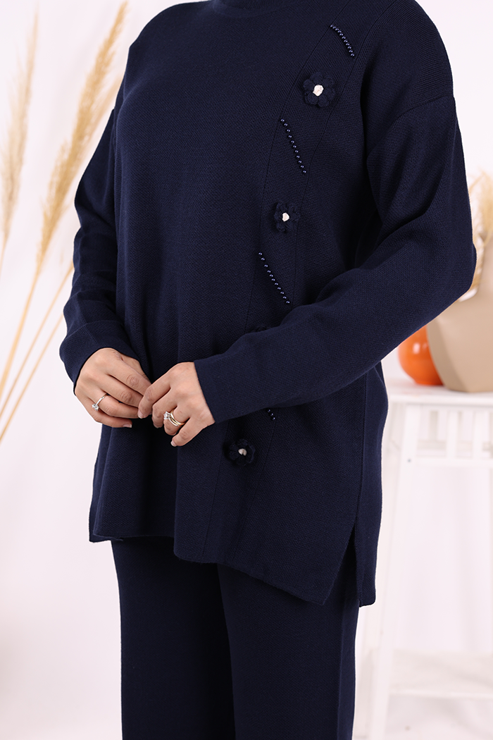 Çiçek Detaylı Triko Takım 1620 Lacivert