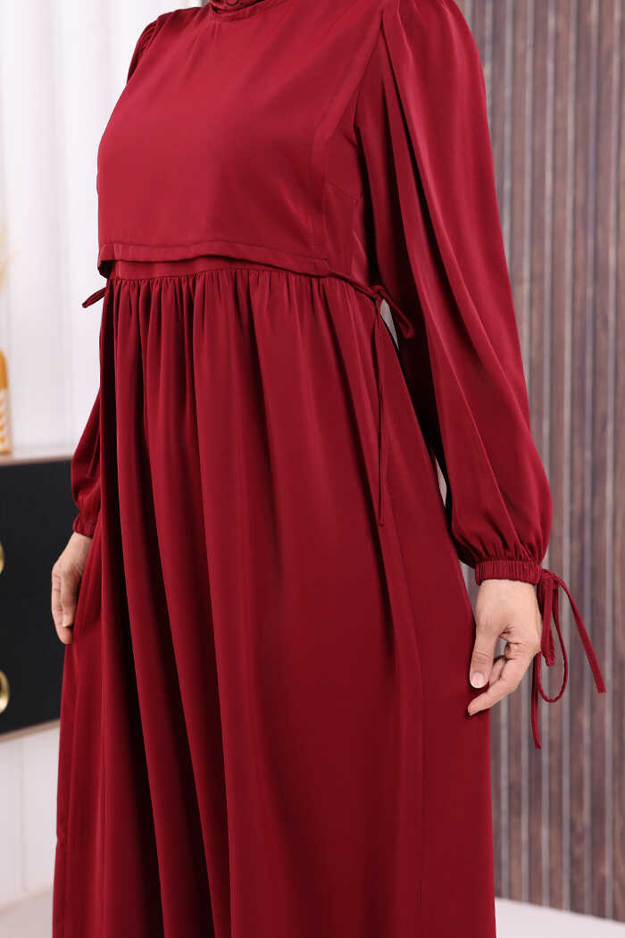 Çift Katlı Bağlama Detay Elbise 6003 Bordo