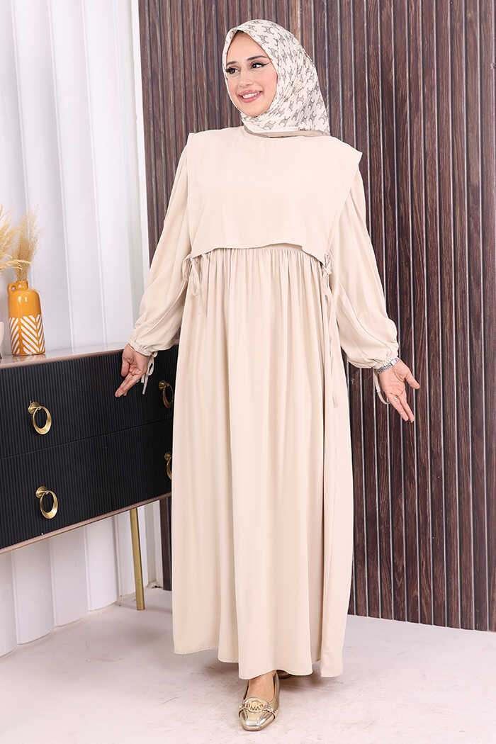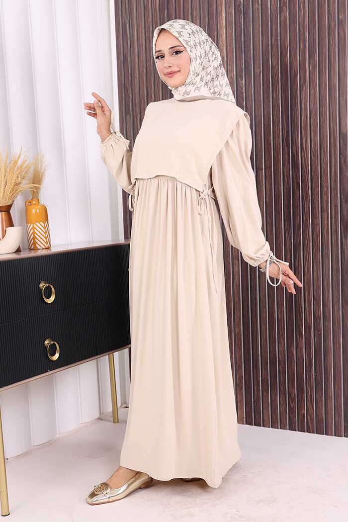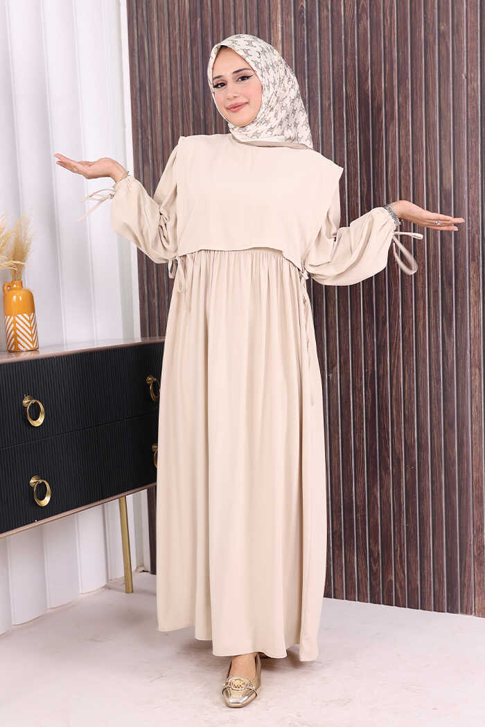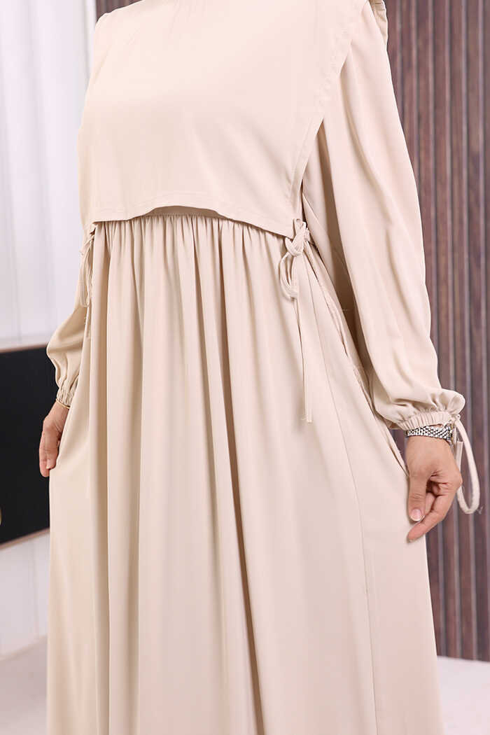 ÇİFT KATLI BAĞLAMA DETAY ELBİSE