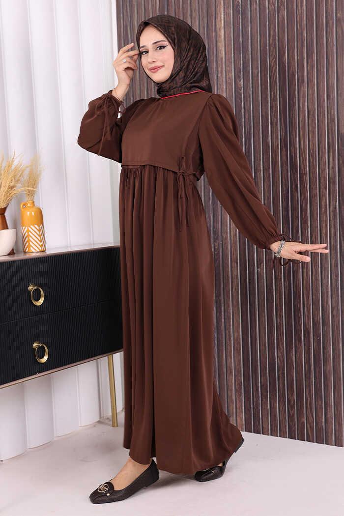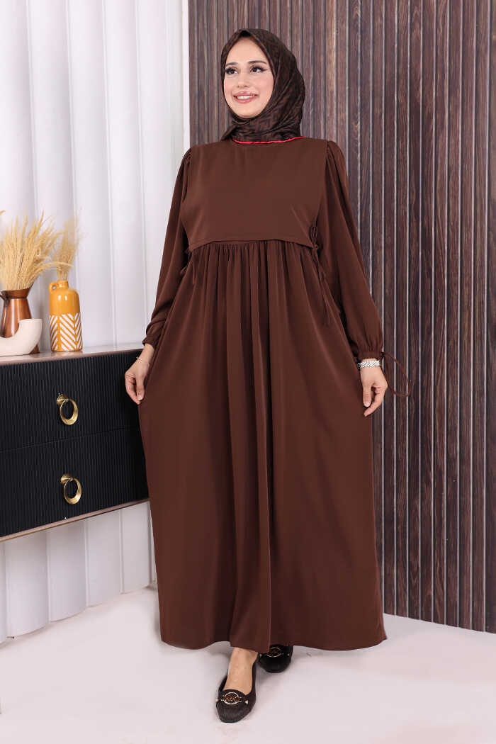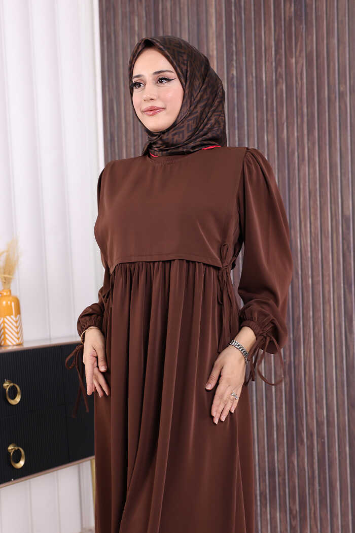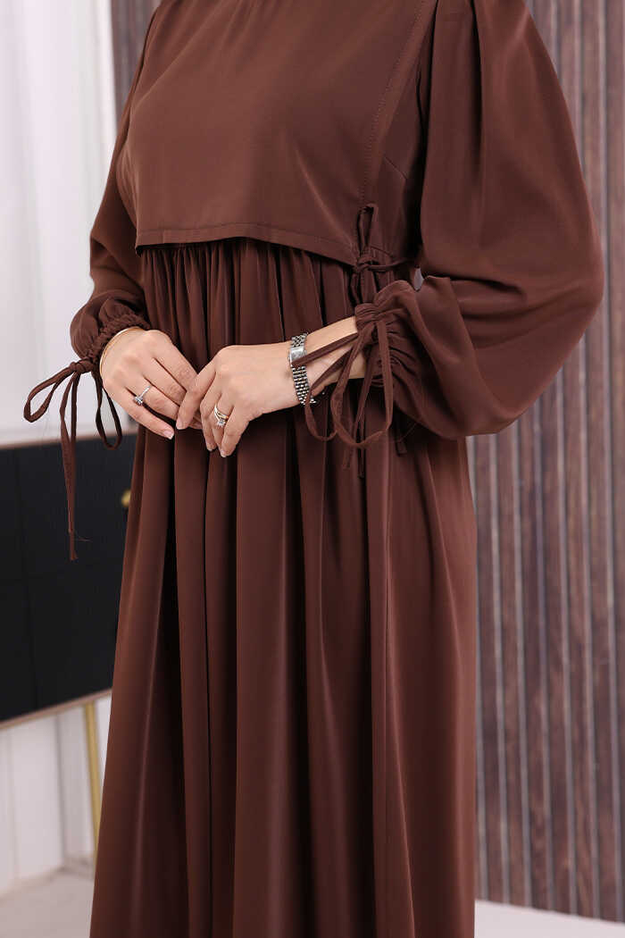 Çift Katlı Bağlama Detay Elbise 6003 Kahverengi