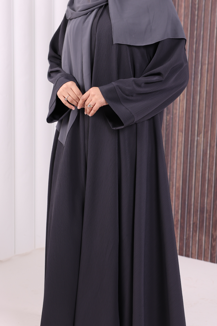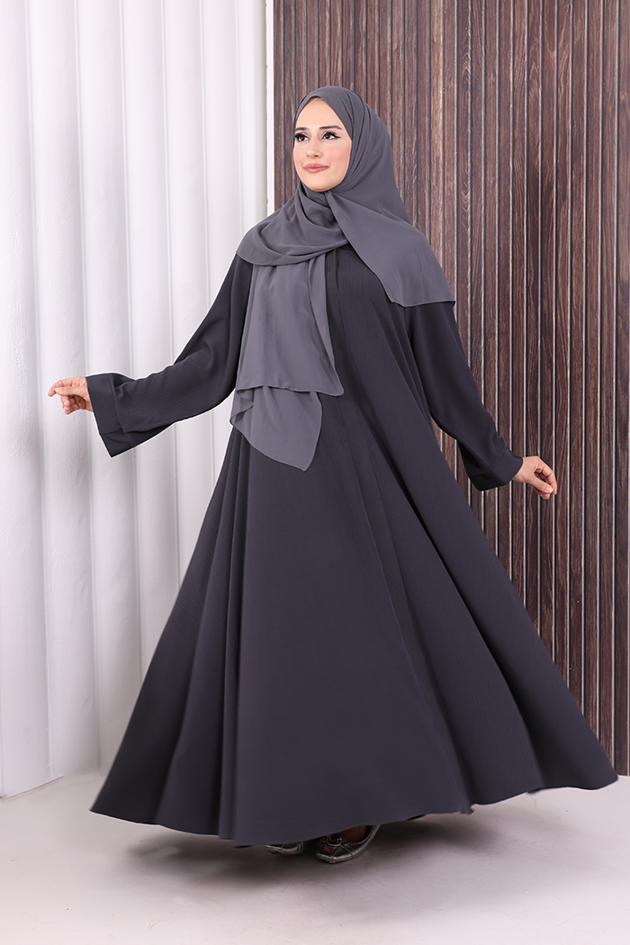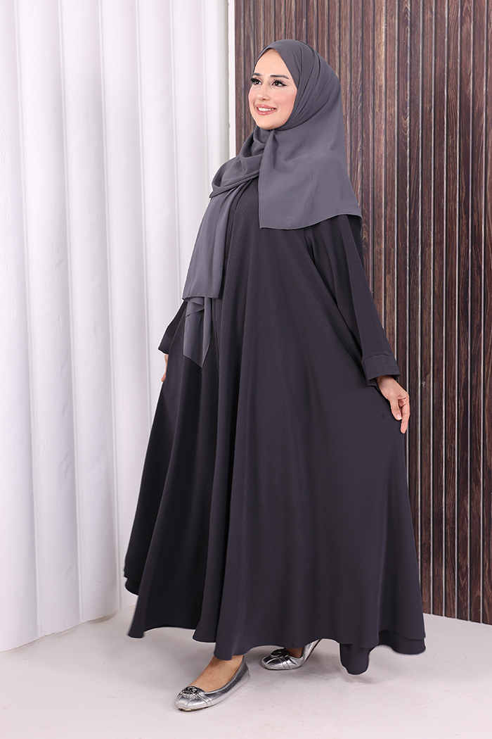 Çıt Çıt Düğme Detaylı Ferace Görünümlü Elbise 70020 Füme