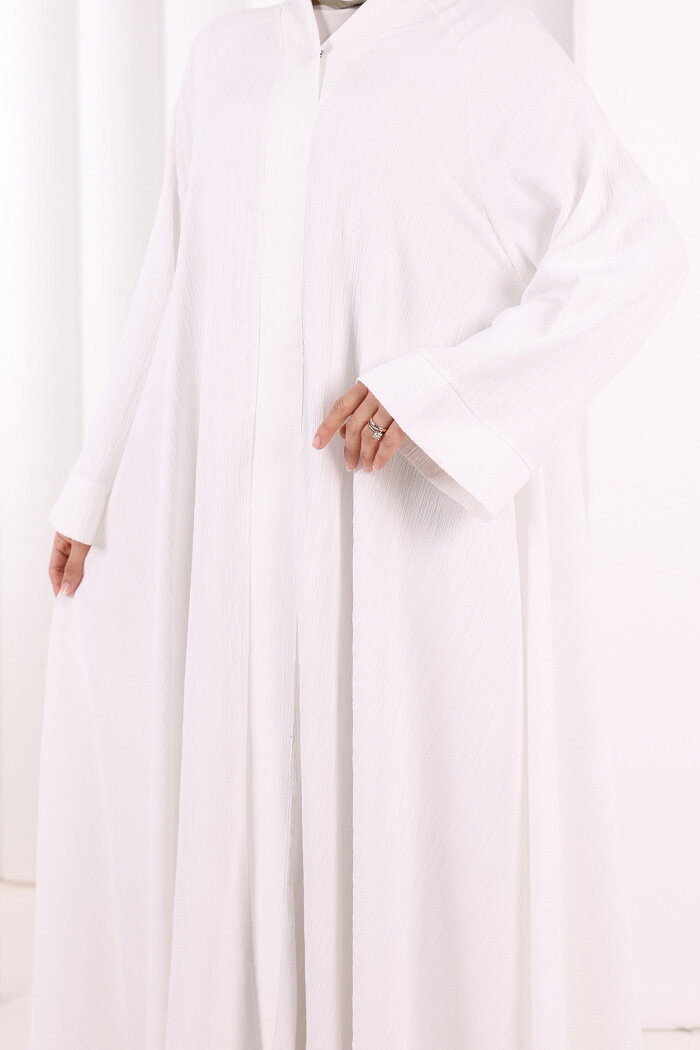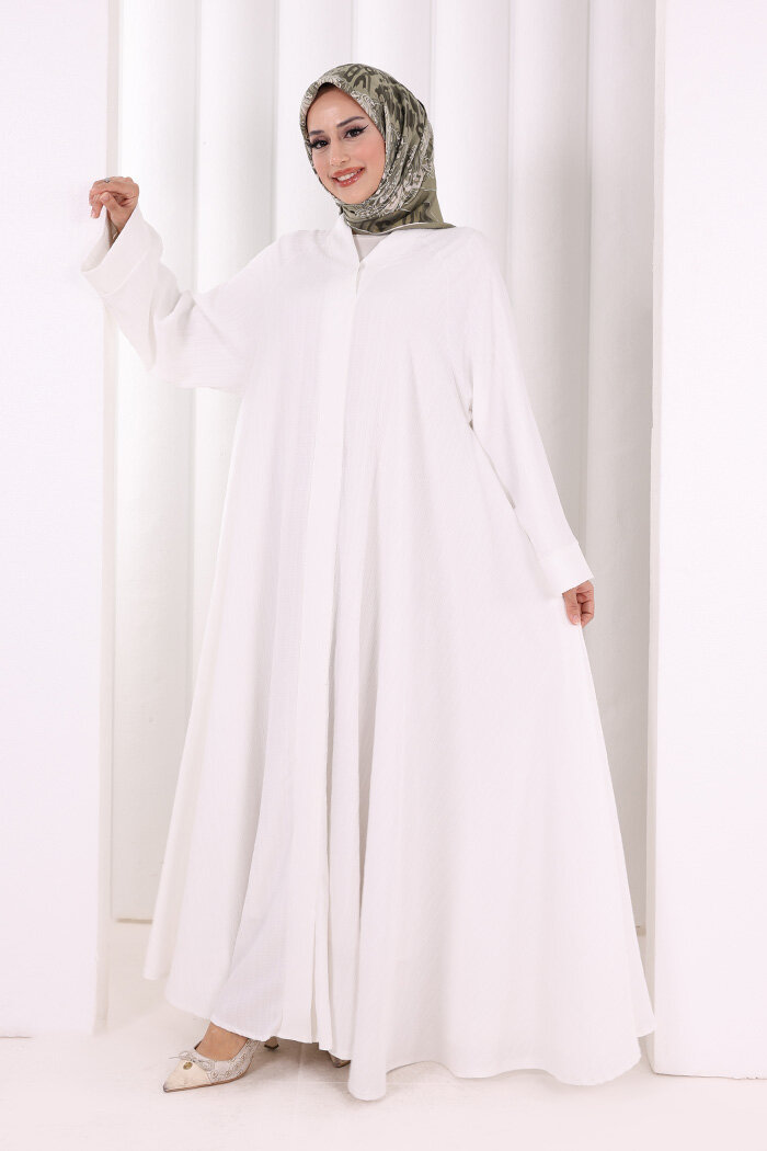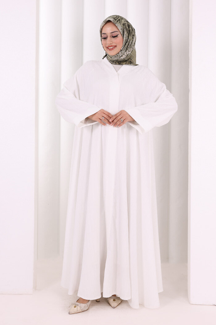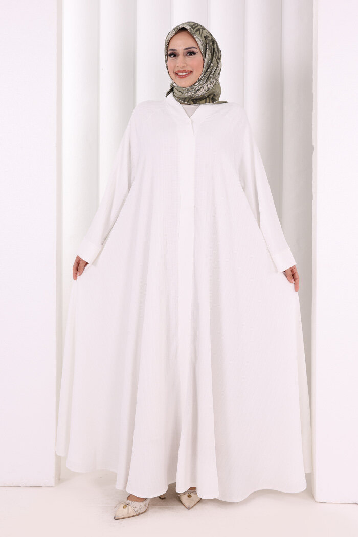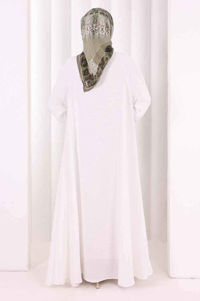 Çıt Çıt Düğme Detaylı Ferace Görünümlü Elbise 6092 Ekru
