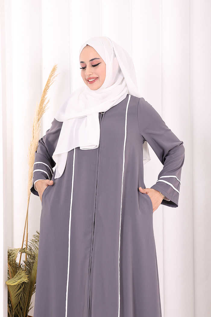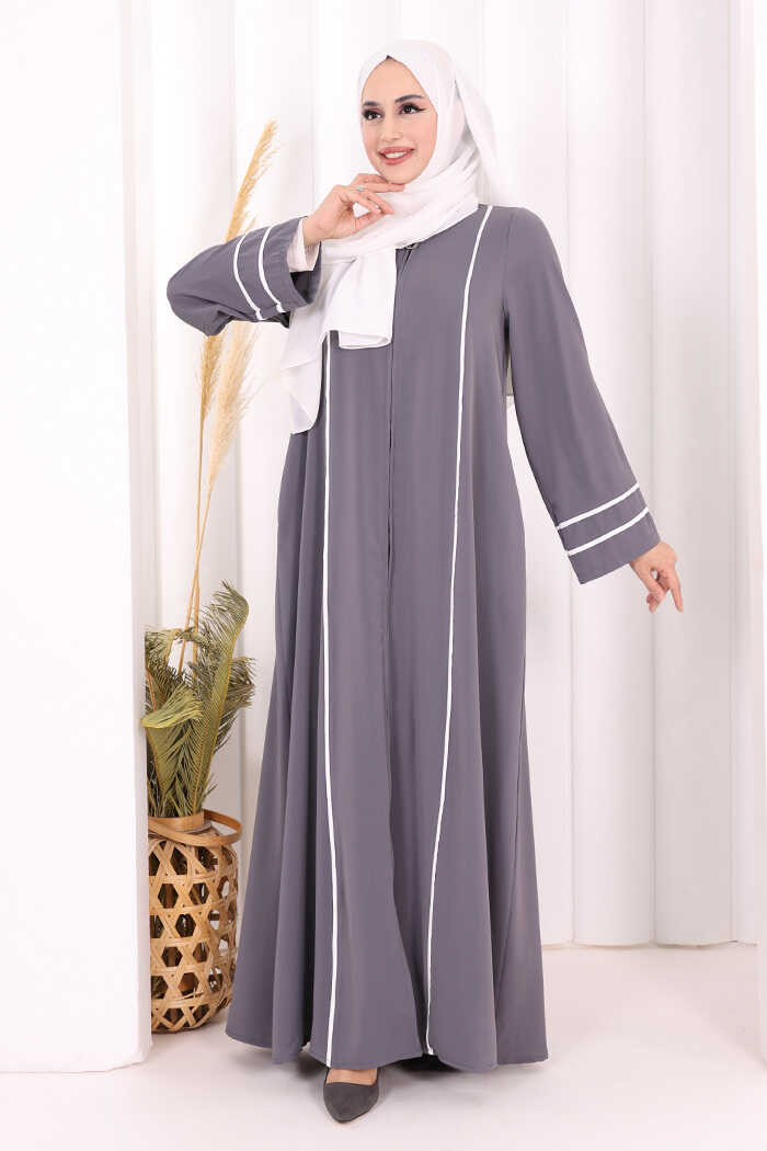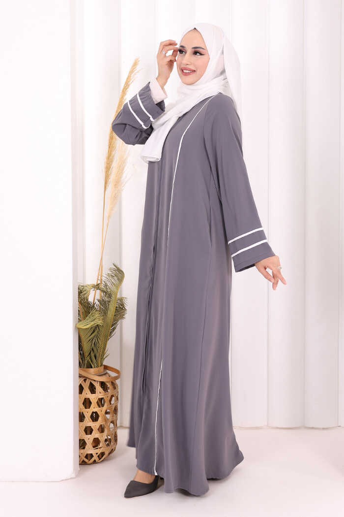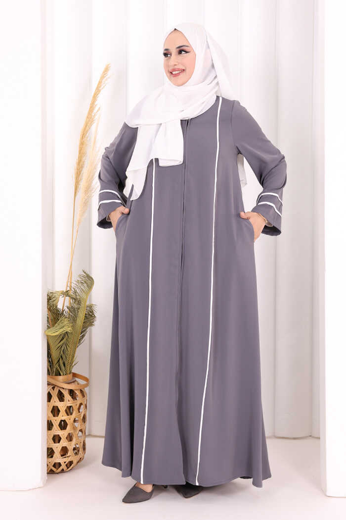 Çizgi Detaylı Boydan Fermuarlı Tam Boy Ferace 6011 Gri