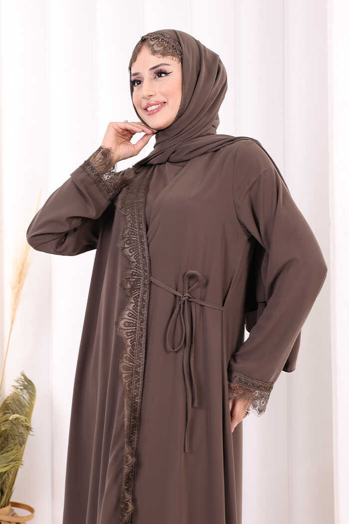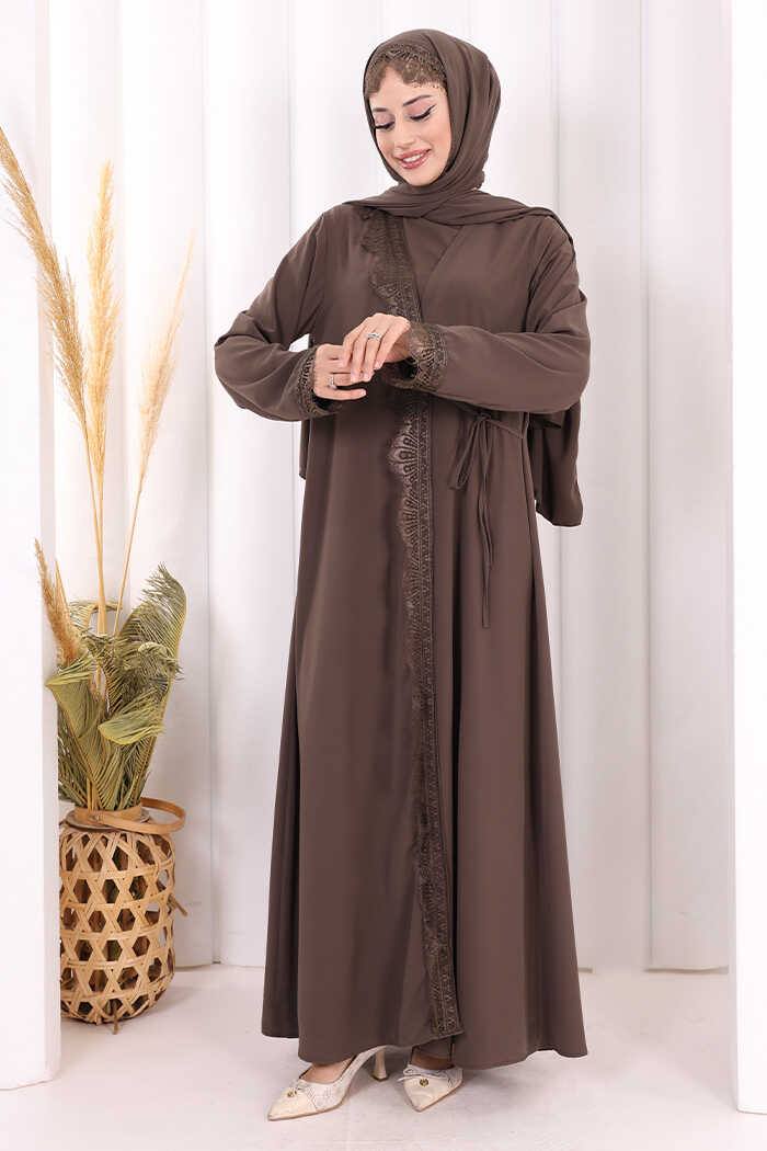 Danteli Şallı Abaya Şal Hediyelidir! 7069 Kahverengi
