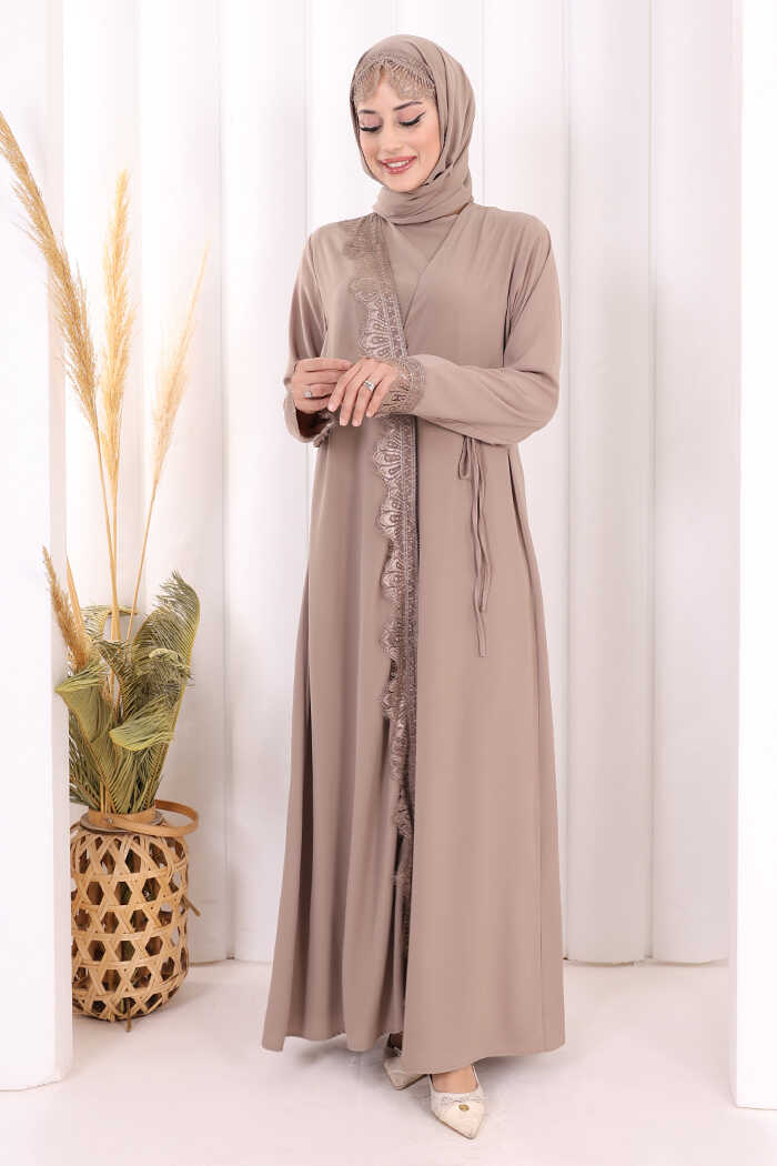 Danteli Şallı Abaya Şal Hediyelidir! 7069 Vizon