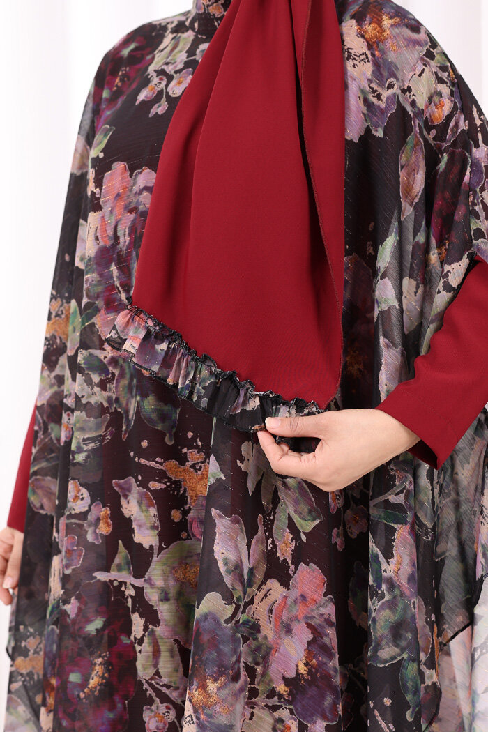 Desenli Şallı Elbise