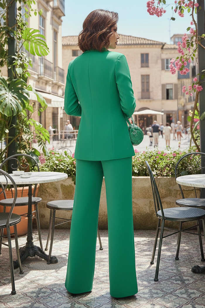 Düğme Detay Blazer Ceket Bol Pantolon Takım 8302 Yeşil