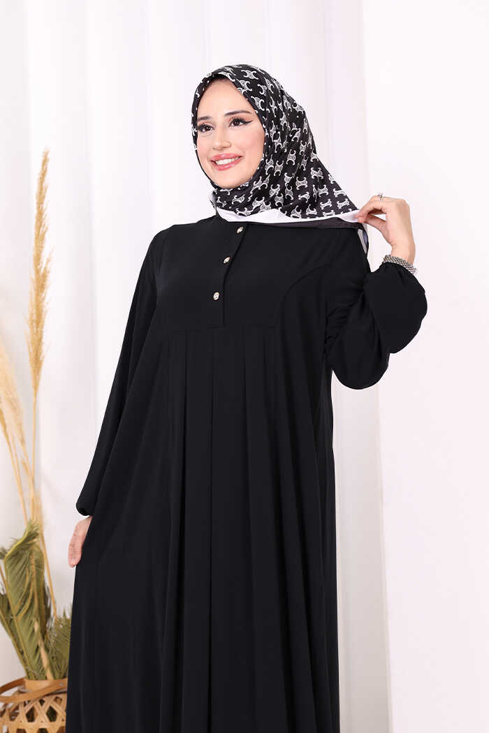 Düğme Detaylı Elbise 6028 Siyah