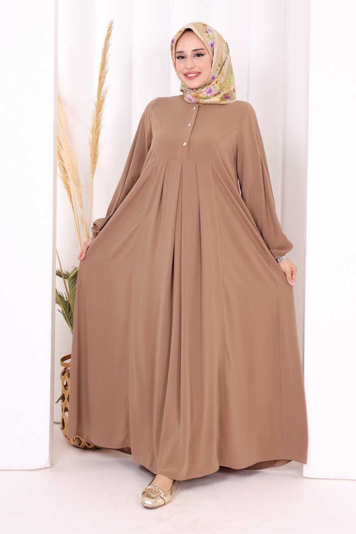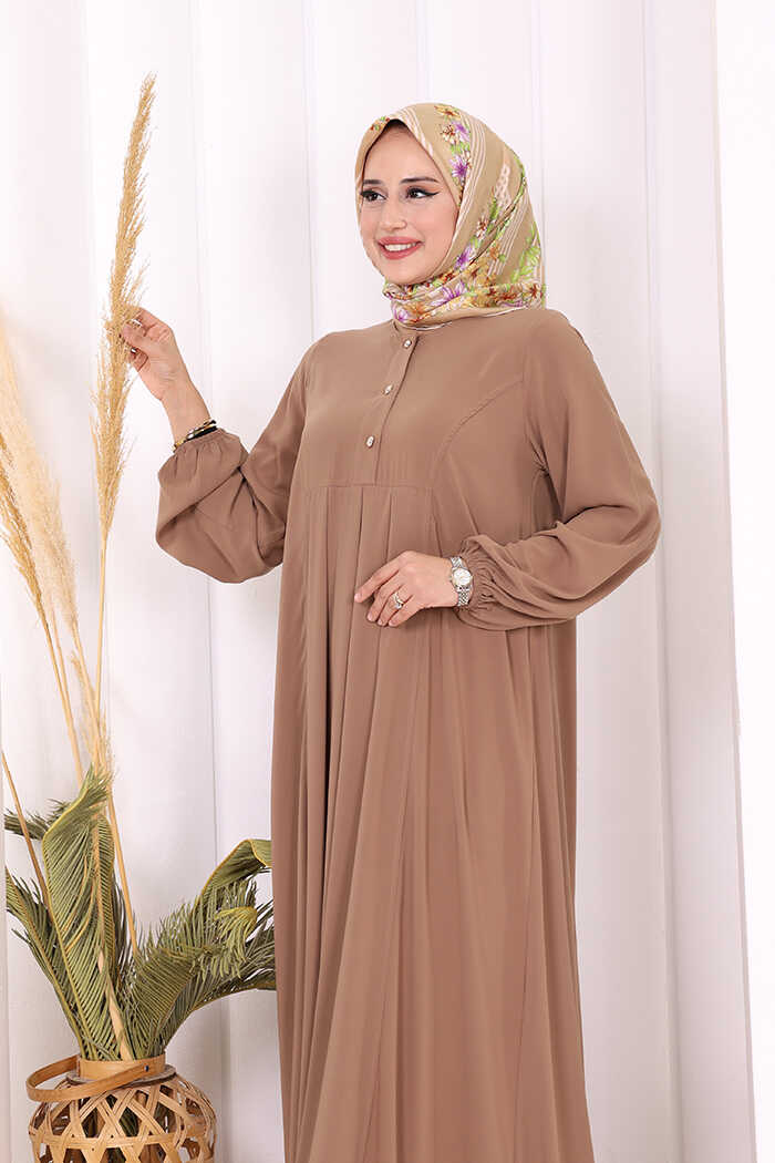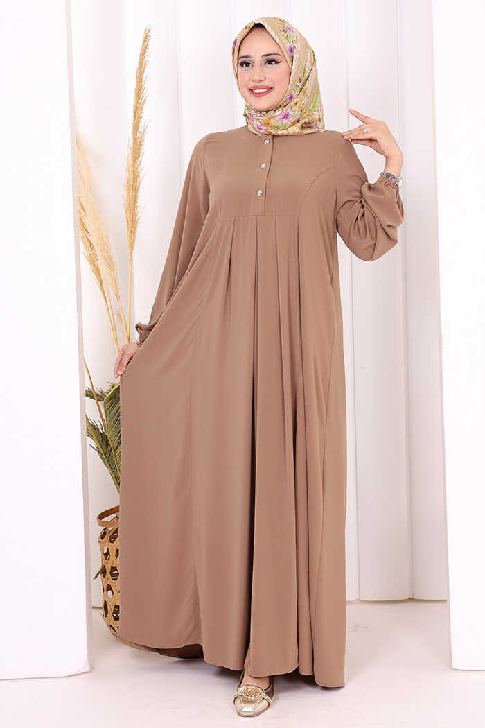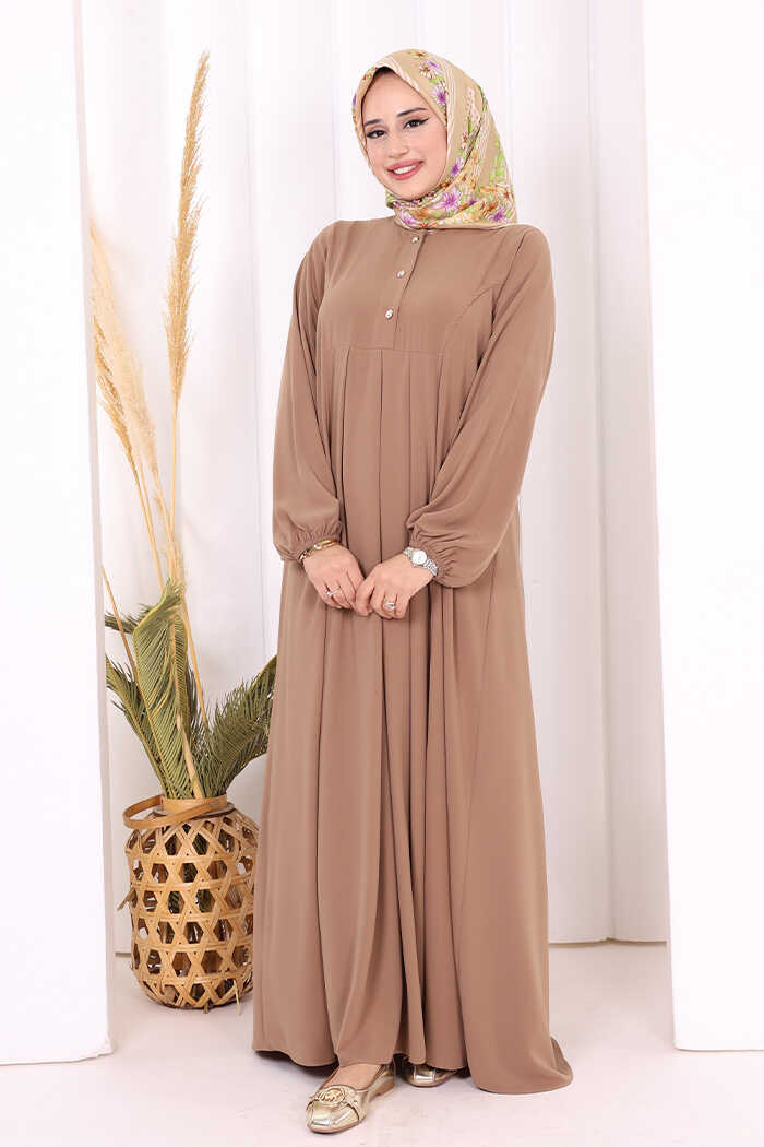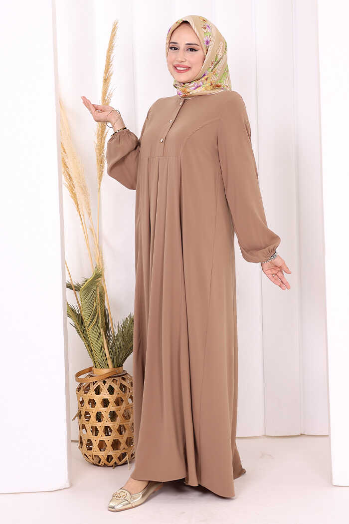 Düğme Detaylı Elbise 6028 Vizon