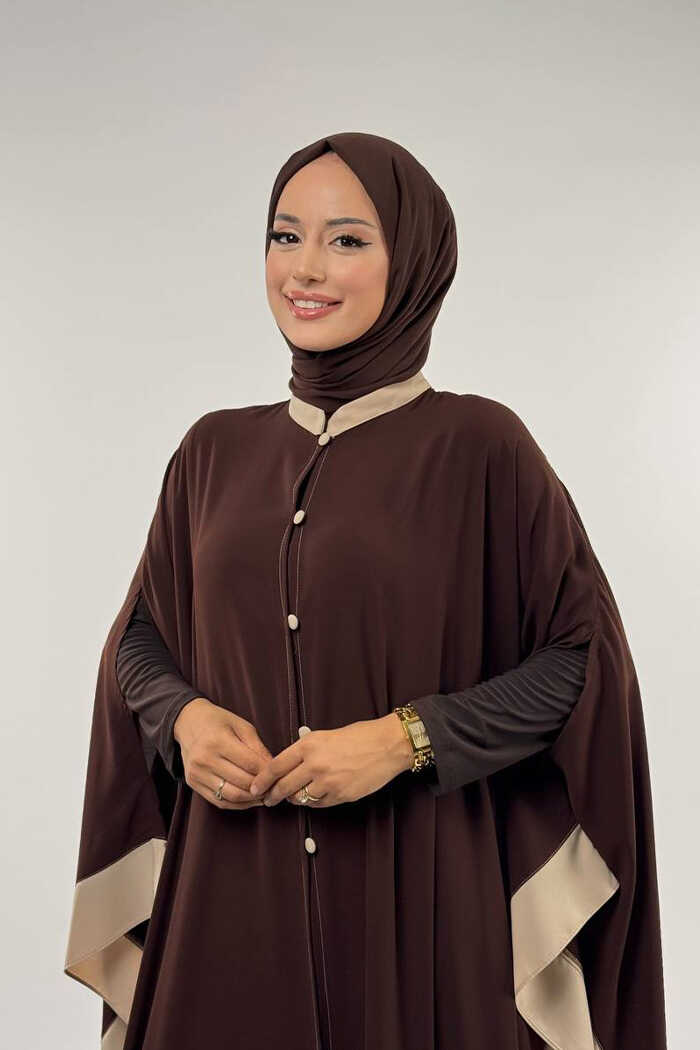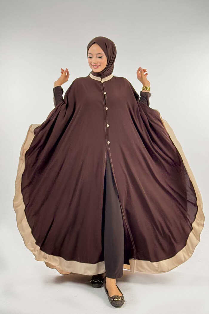 Düğme Detaylı Pelerin 70024 Kahve-Taş