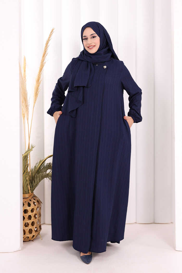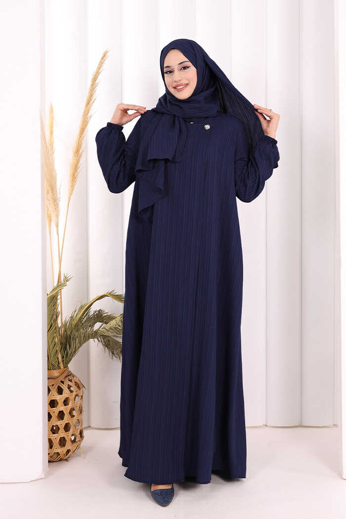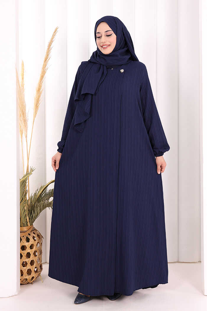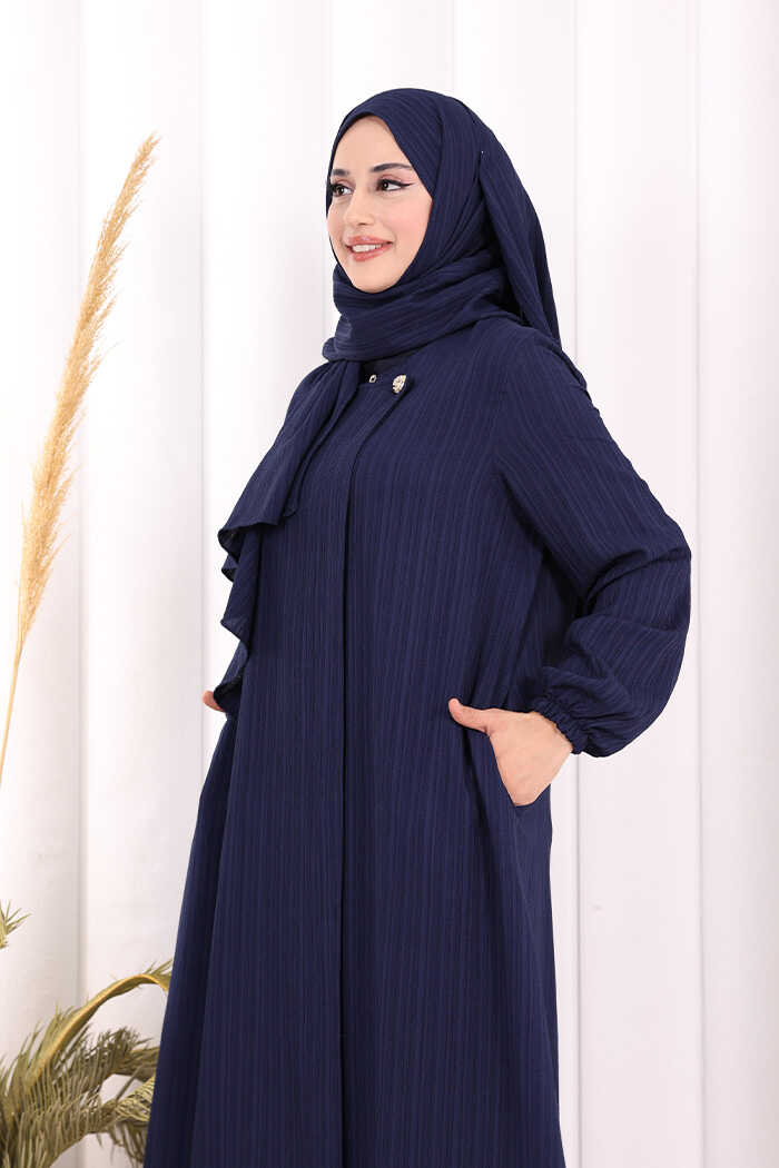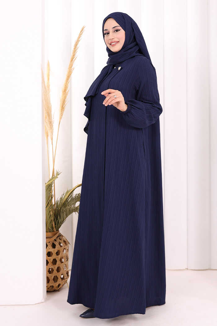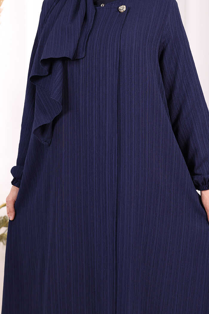 Düğme Detaylı Şallı Ferace 7058 Lacivert